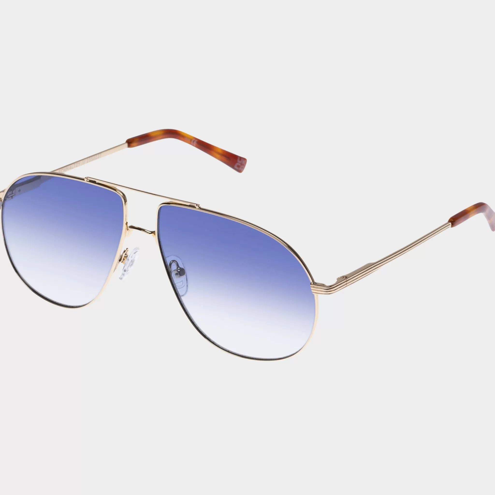 Finished in gold with contrast blue ombre lenses for a deluxe vintage vibe.