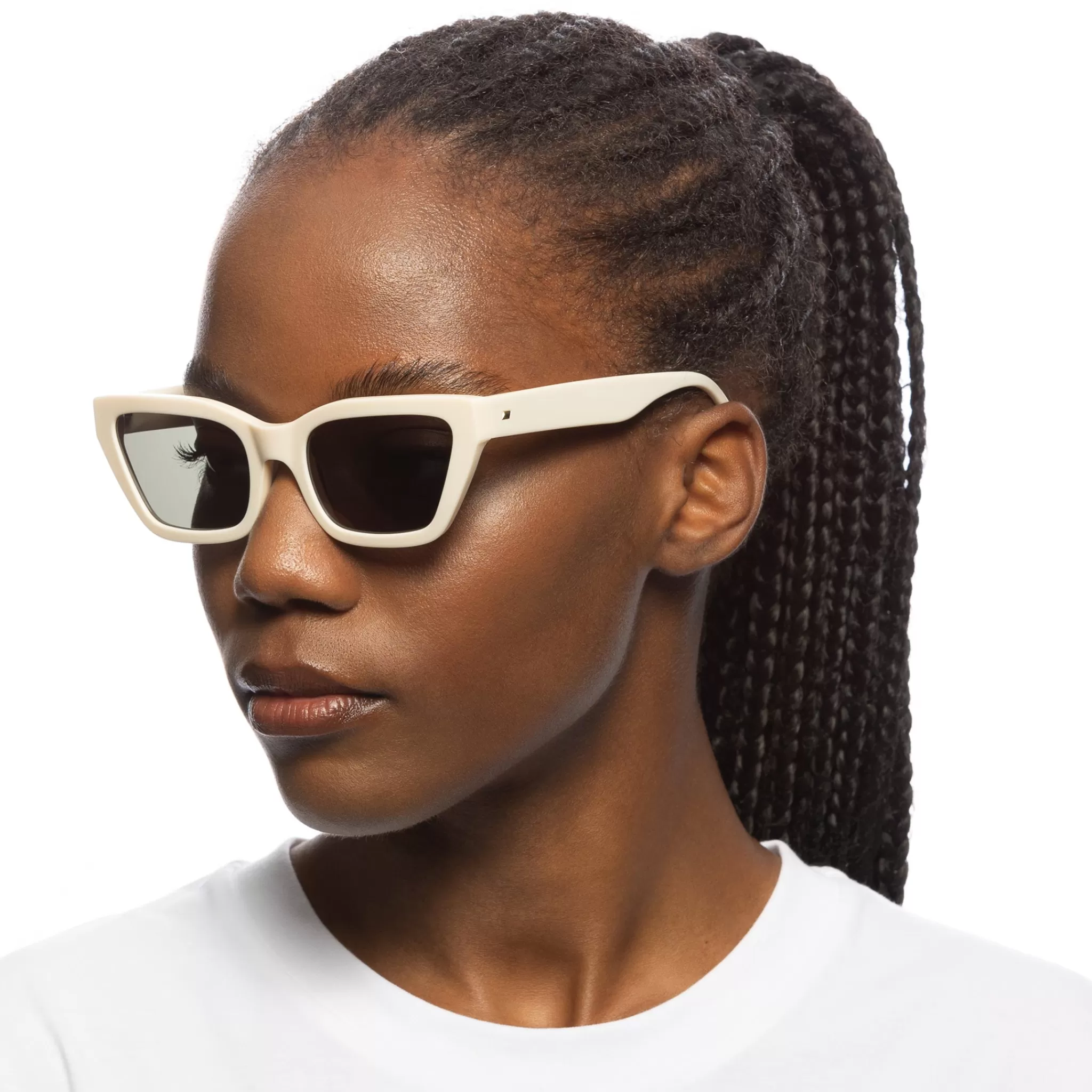 Finished in a vintage ivory frame paired with dark lenses.