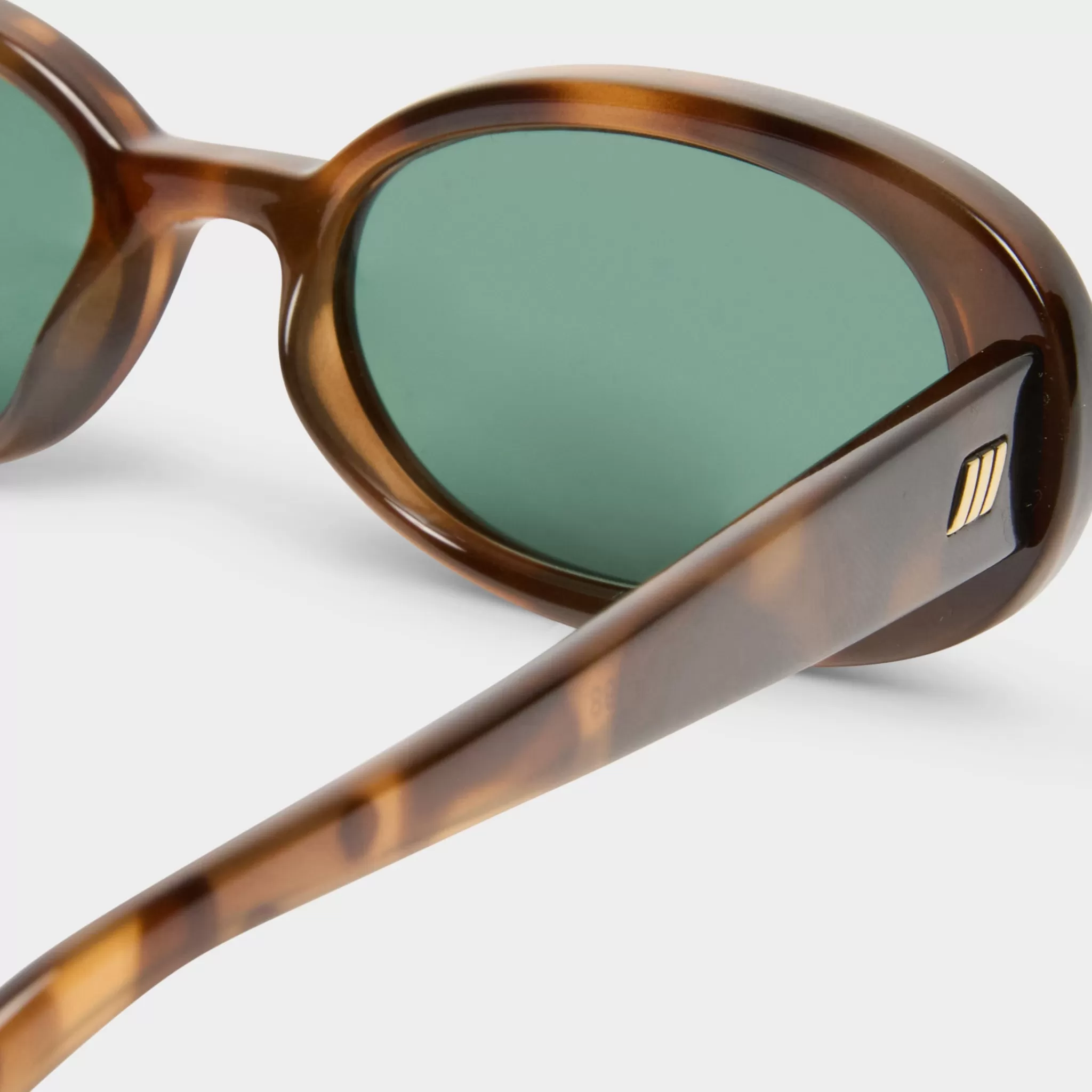 • Finished in a dark tortoiseshell frame with dark green lenses.