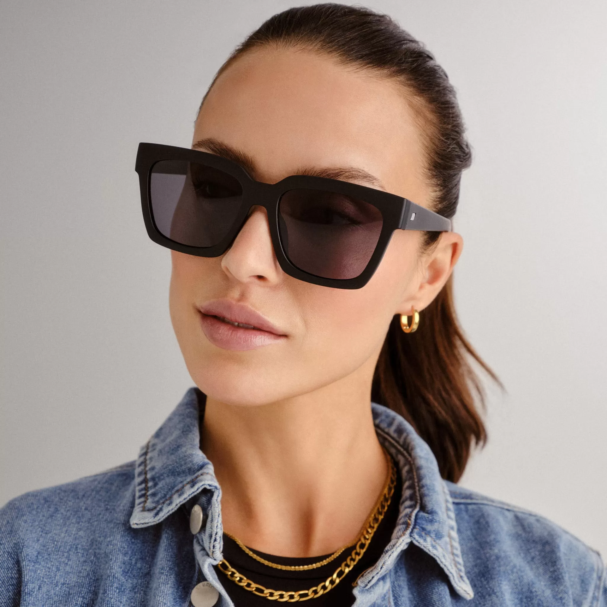 Offering an oversized fit for larger faces, WEEKEND RIOT is a modern D-frame silhouette that focuses on comfort and fit. With lenses fitted to provide maximum UV protection, each style is subtly finished with iconic Le Specs flag stripe metal hardware on both temples.