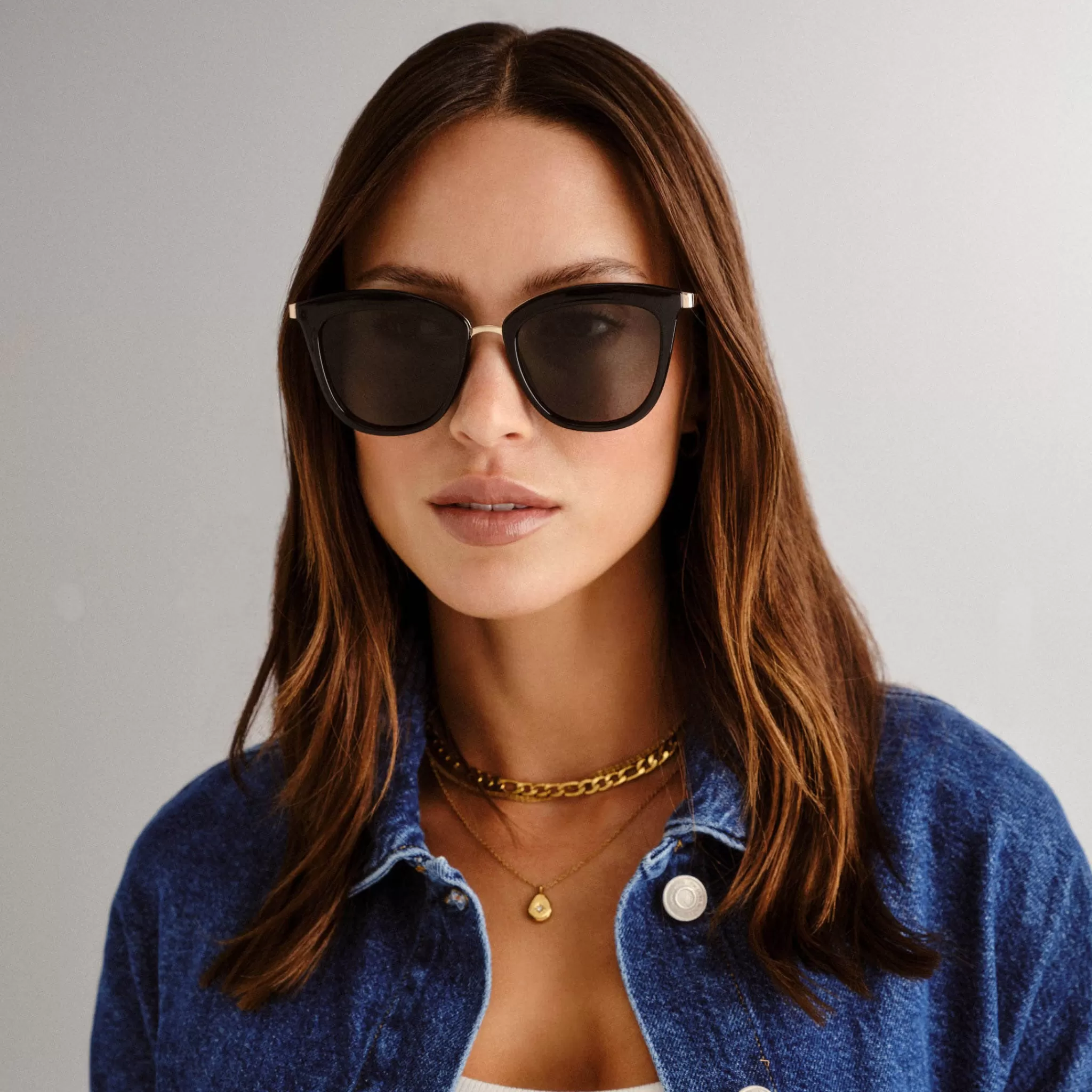 Designed with narrow proportions and wide fit for all face sizes, our DYNAMITE rectangular frame sunglasses are a wardrobe staple for both guys and girls. Featuring a classic noughties-inspired look, this unisex sunglass features discreet Le Specs metal stud detailing on both temples.