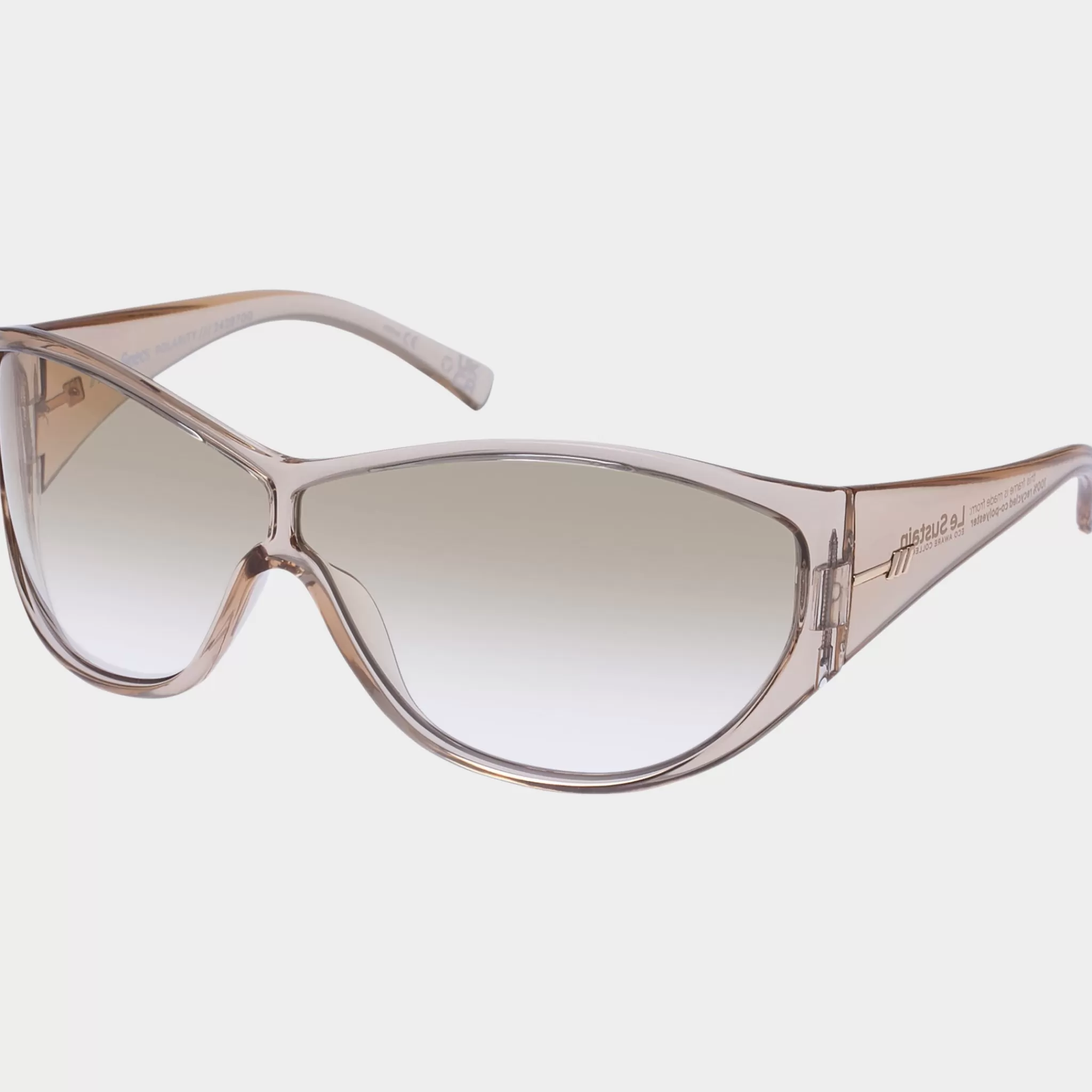 Finished in a translucent pale nude frame with soft tonal grad flash mirror lenses.