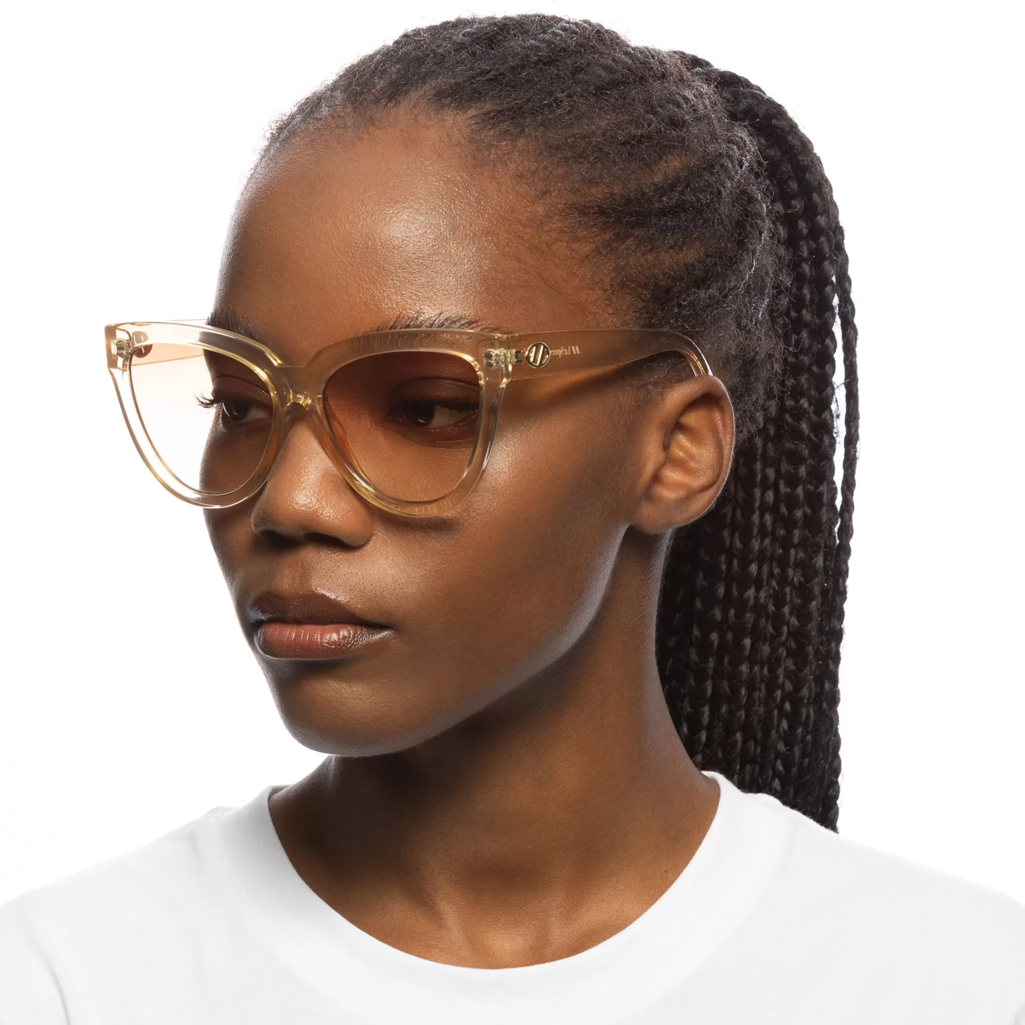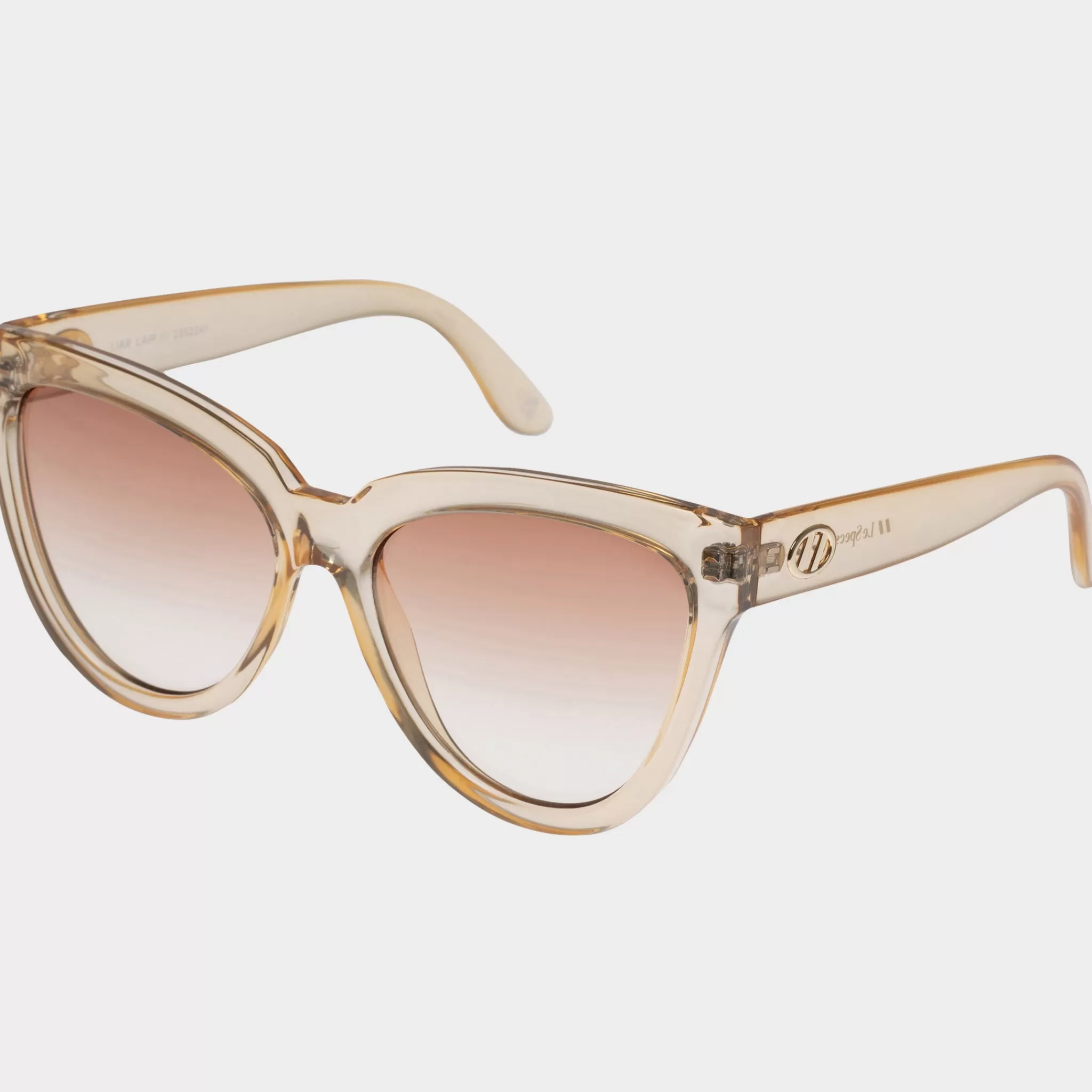 Sharp and sexy, our LIAR LAIR sunglasses offer an everyday look for all face shapes. This thick-framed oversize cats eye style is designed with a modern flat profile and iconic Le Specs flag stripe metal hardware.