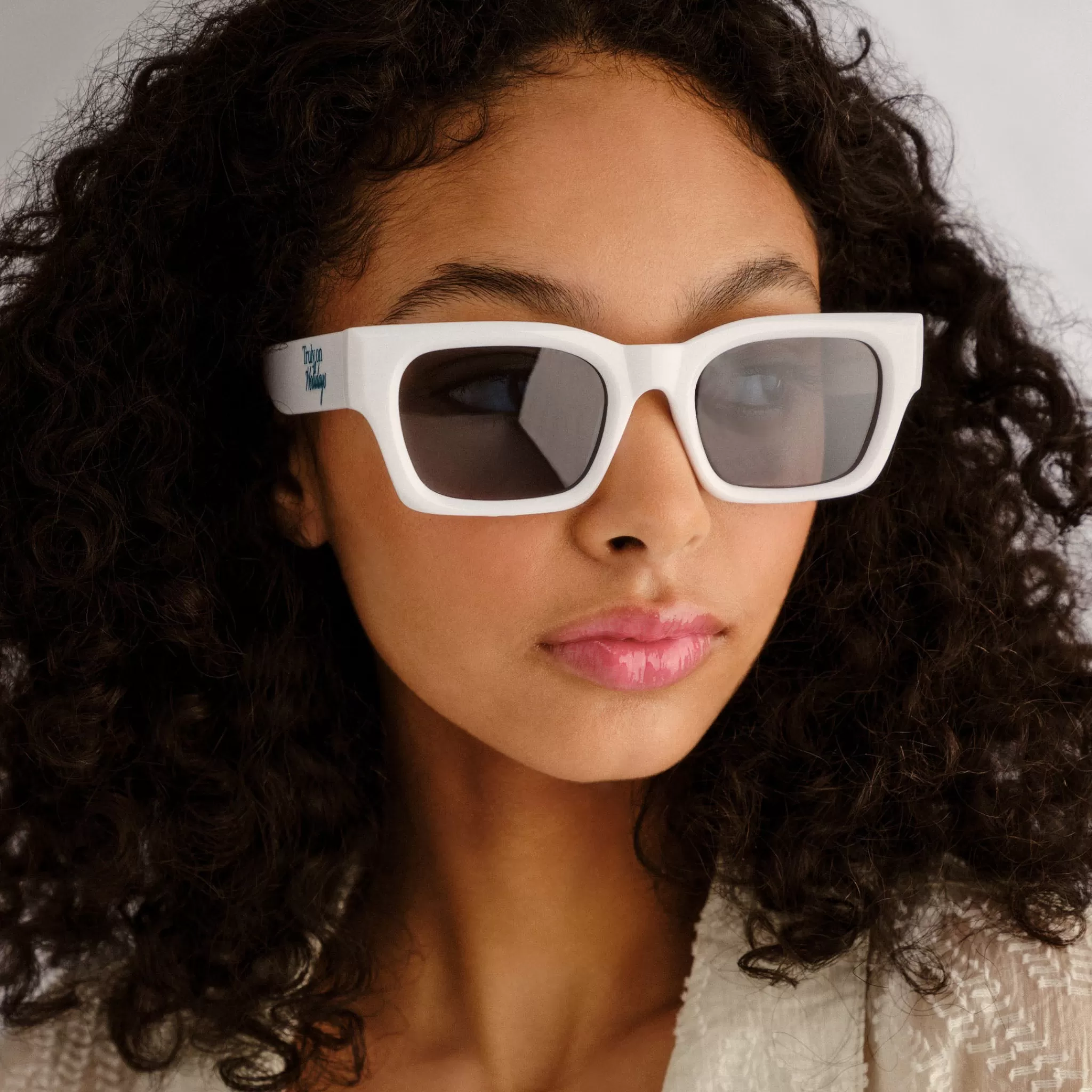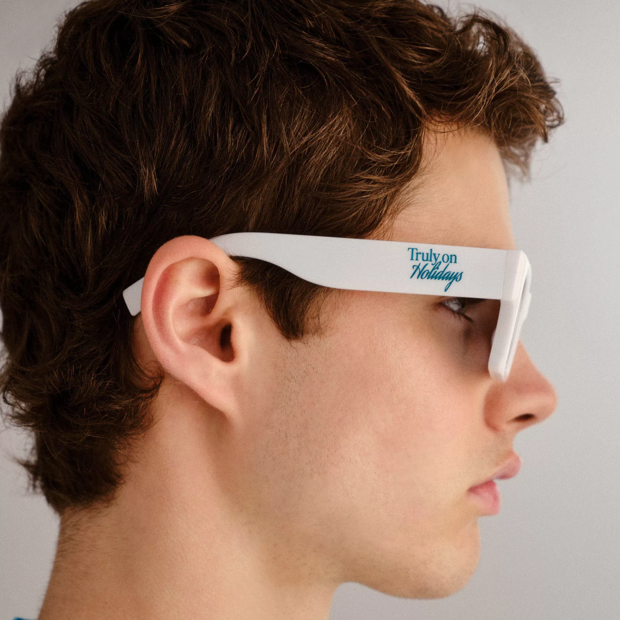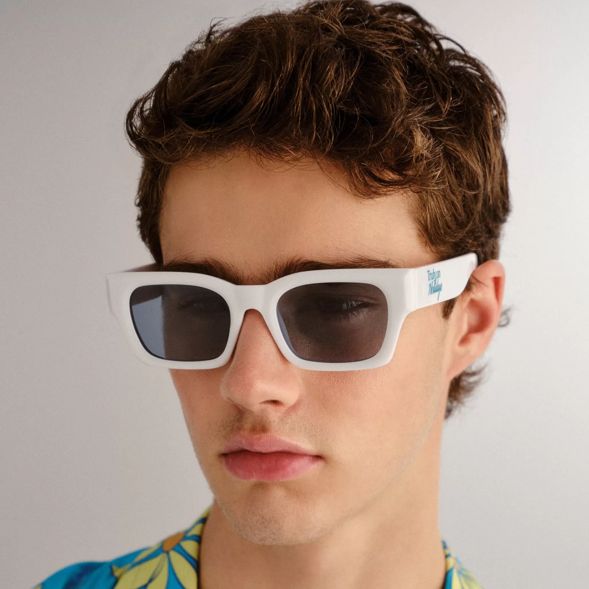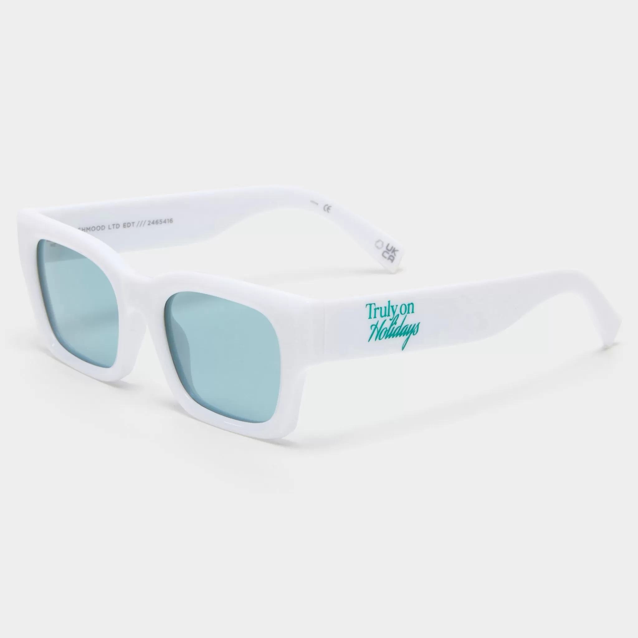 Lending a modern and minimalistic update to a classic D-frame shape, our SHMOOD silhouette is the perfect pair of ‘everyday’ sunglasses. Designed with unisex details and midsize proportions, this rectangular style offers carefully chamfered edges around each lens that catch the light and is finished with blue Truly on Holidays logo printed on both temples.