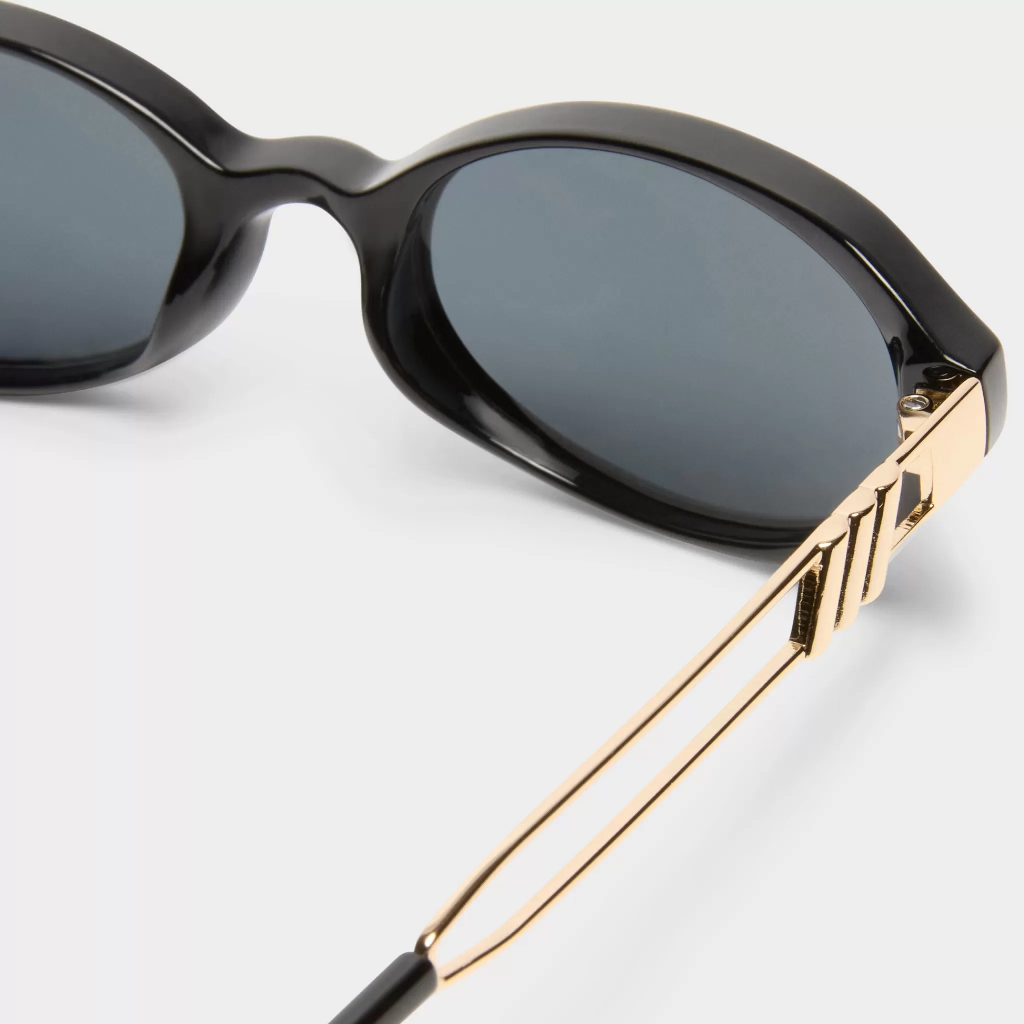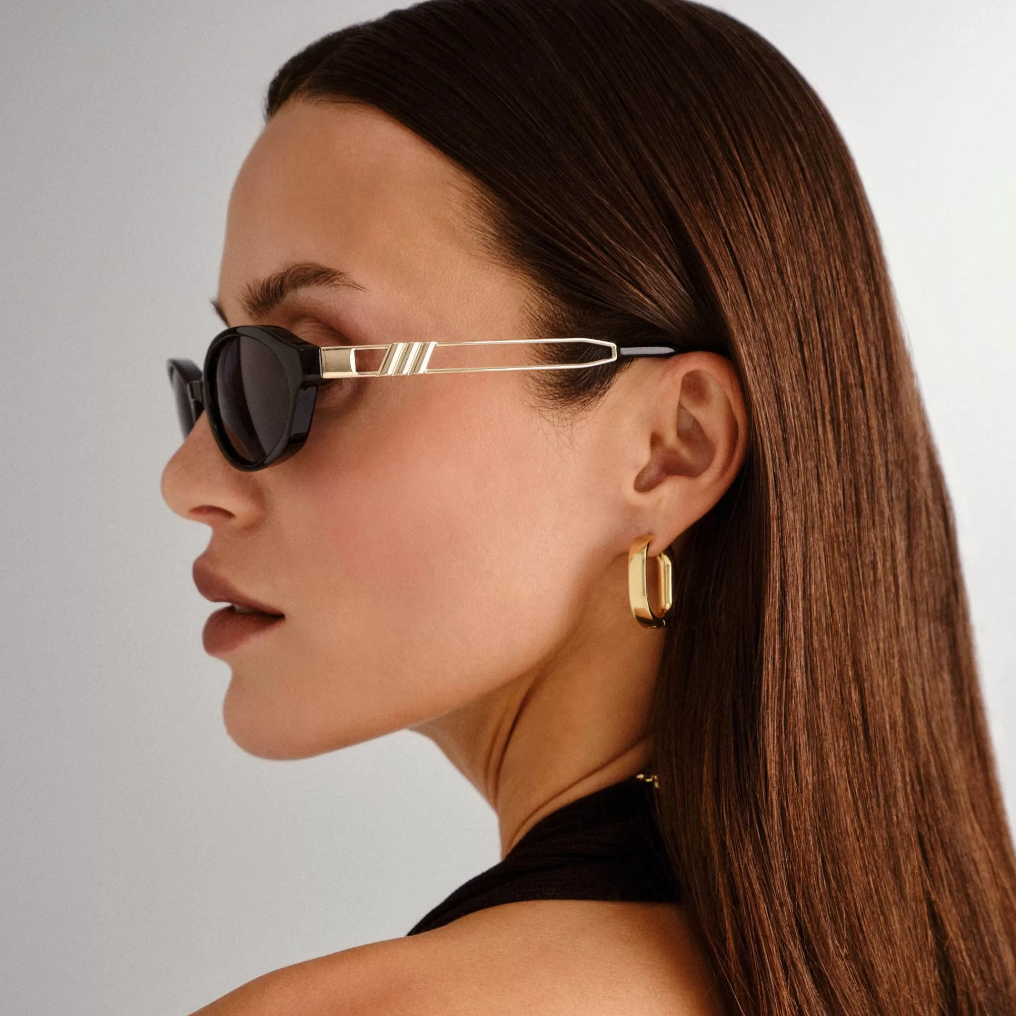 Our LUNITA oval sunglasses offer a minimalist Y2K aesthetic with narrow proportions. Designed with deluxe metal pinstripe temples, this slimline style is a summer must-have.