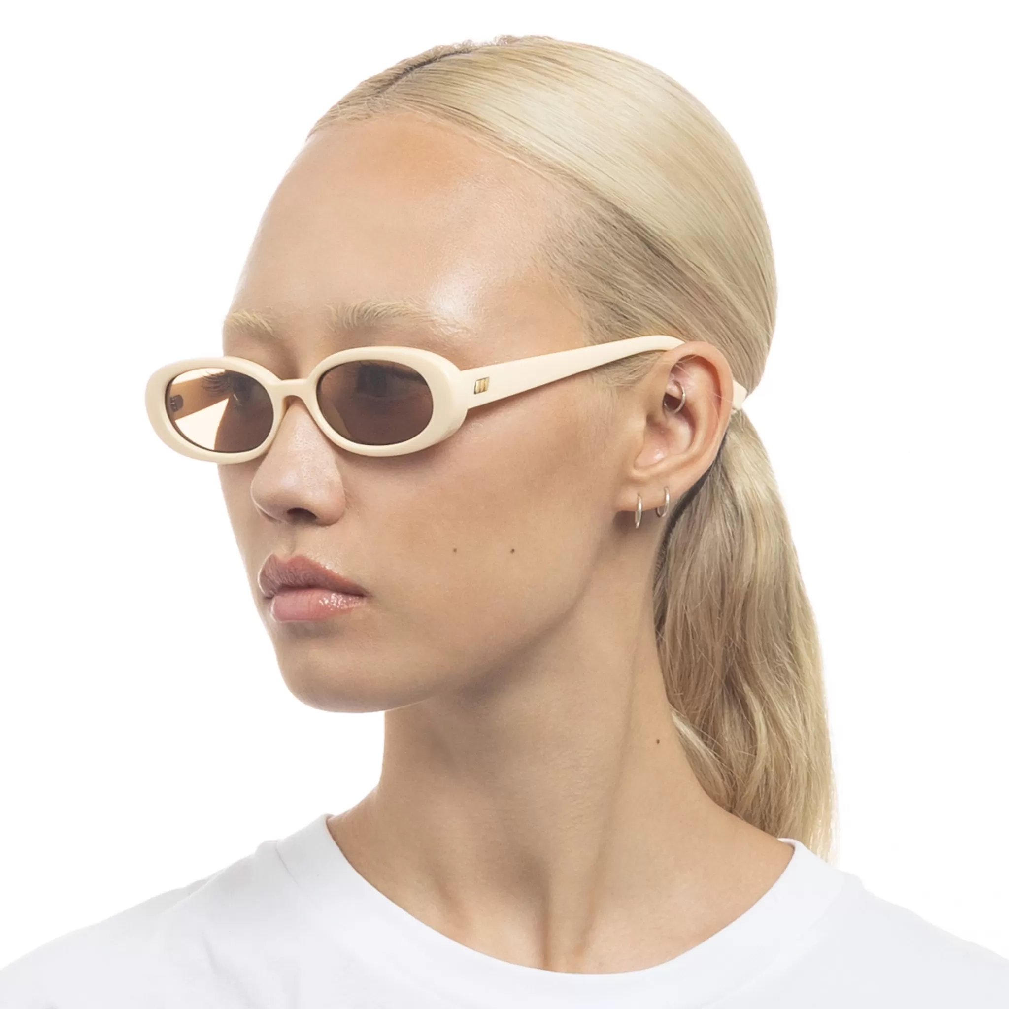 Exuding ’90s confidence, our iconic OUTTA LOVE silhouette offers a minimal nineties look. This petite, slimline oval silhouette features a modern flat profile and signature Le Specs gold metal hardware, and is just the right size to complement your face without hiding your best features.