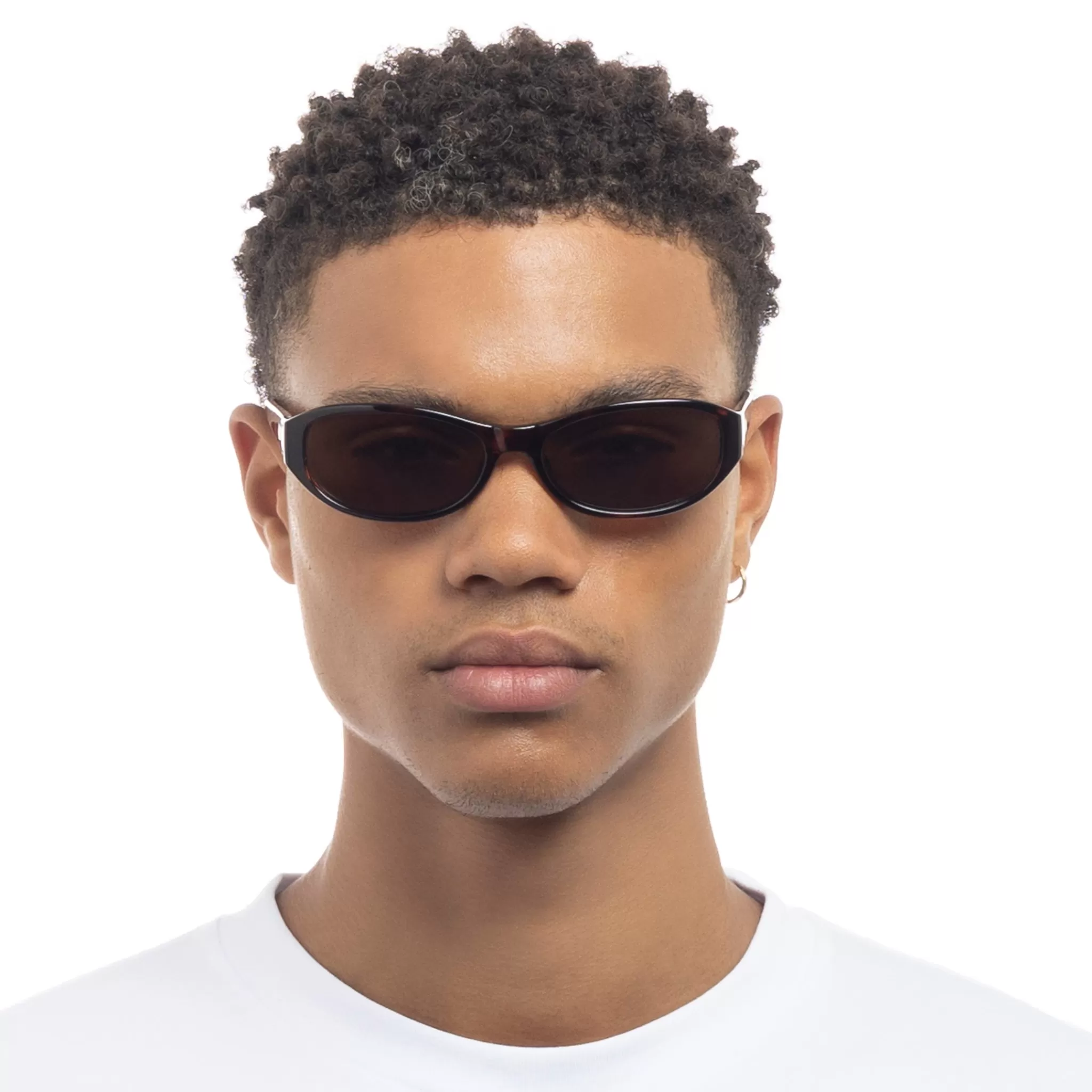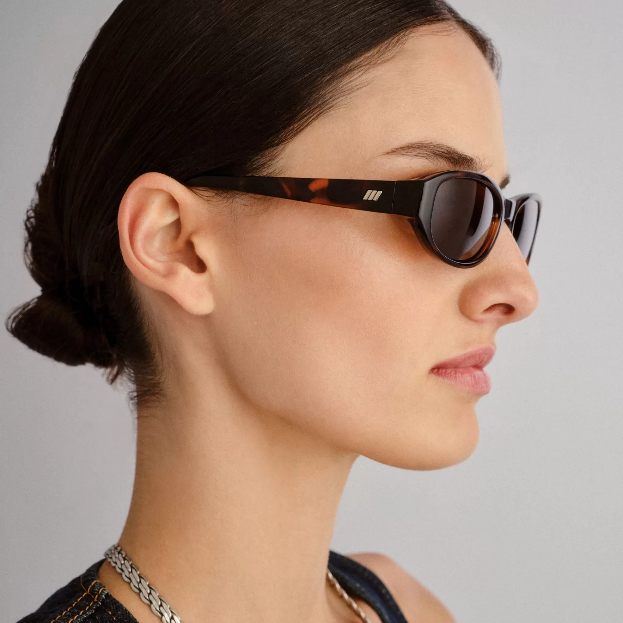 Add a touch of nostalgia to any outfit with our early 90s inspired DON’T CHA slimline oval sunglasses. Designed with a sleek, exaggerated frame and wider fit for all faces, these frames feature a lightly wrapped profile and are finished with discreet signature Le Specs metal hardware on both temples.