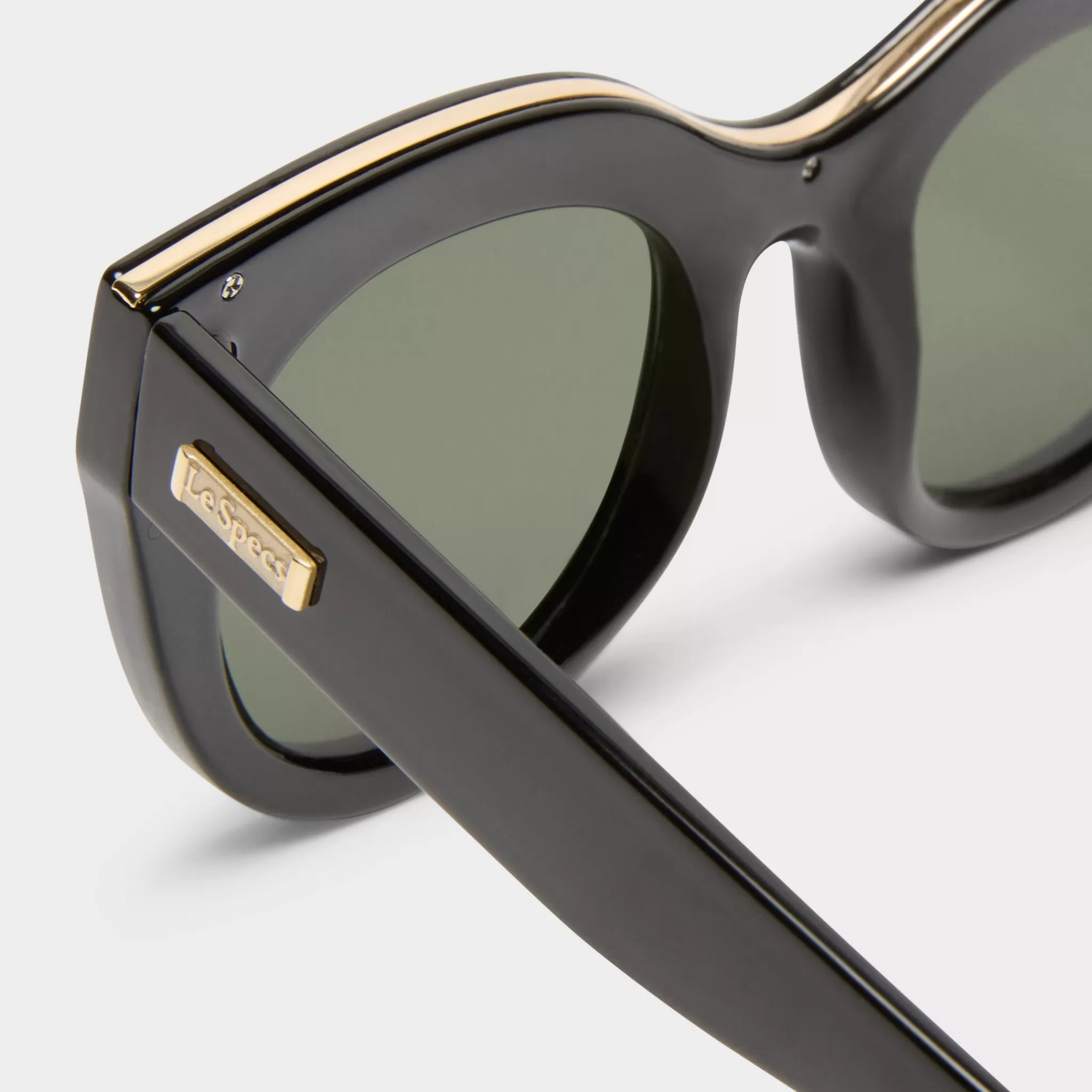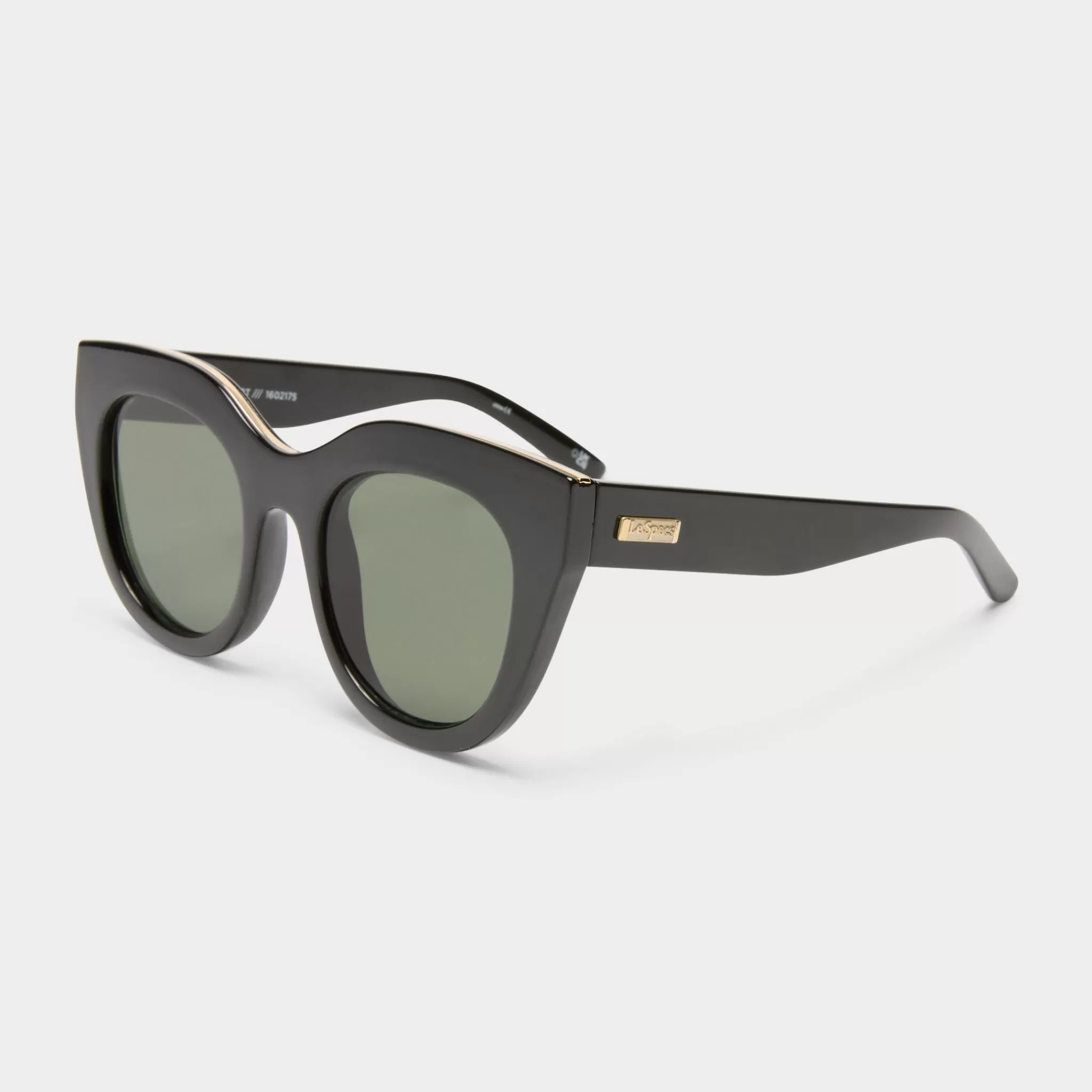 A favourite of Meghan Markle and Olivia Palermo, the AIR HEART silhouette is an iconic Le Specs style. With oversized and dramatic proportions reminiscent of a cat eye, the style is designed in thick black and luxurious metal top bar inlay, then fitted with premium zero base khaki flat lenses.