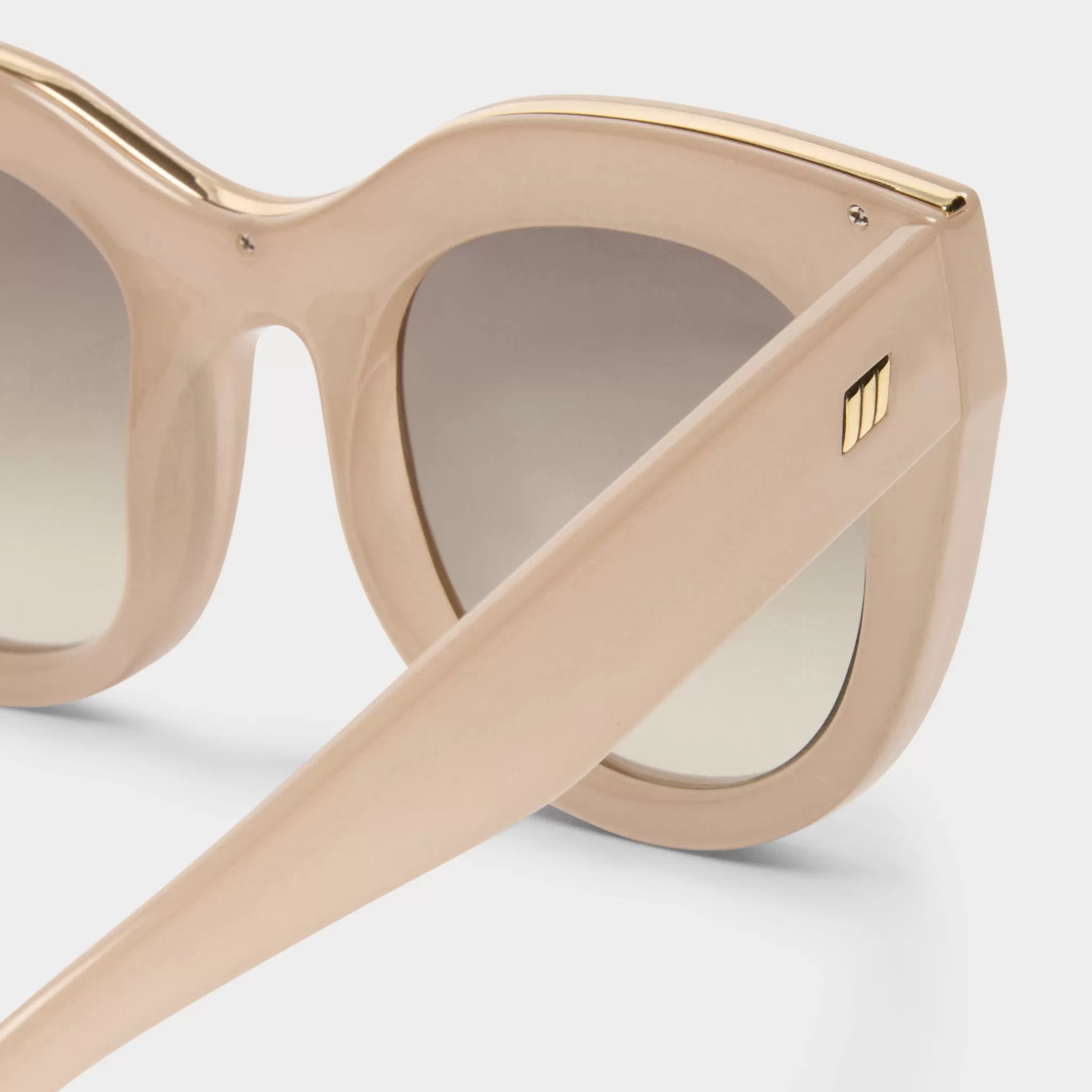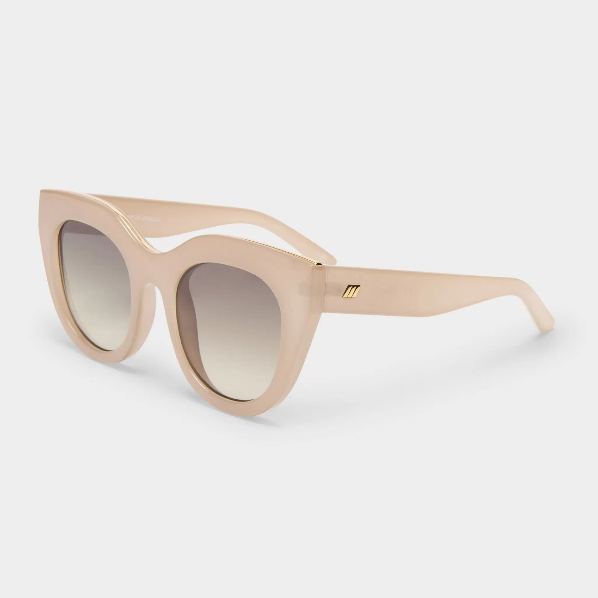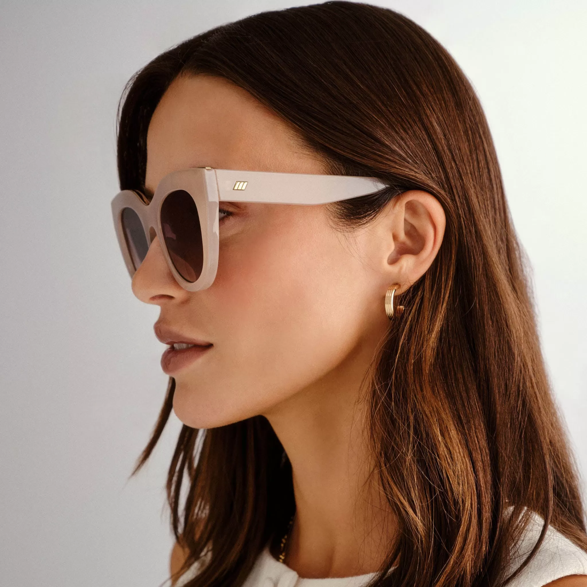 A favourite of Meghan Markle and Olivia Palermo, the AIR HEART silhouette is an iconic Le Specs style. With oversized and dramatic proportions reminiscent of a cat eye, the style is designed with a thick semi-translucent tan frame and luxurious metal top bar inlay, then fitted with premium zero base smoke flat lenses. The perfect statement sunglass to suit all face shapes.