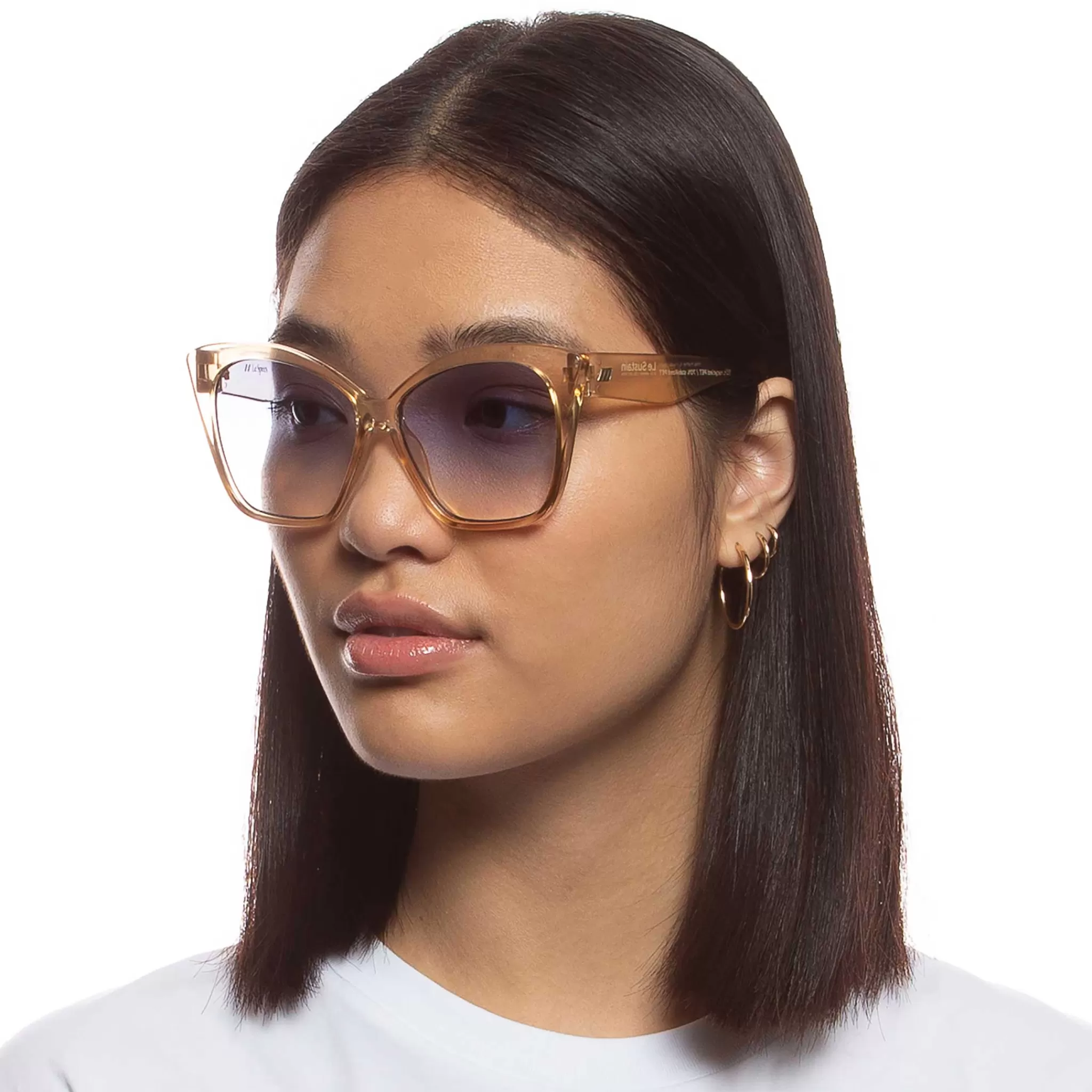 Finished in a vintage translucent paired with flattering ombre lenses.