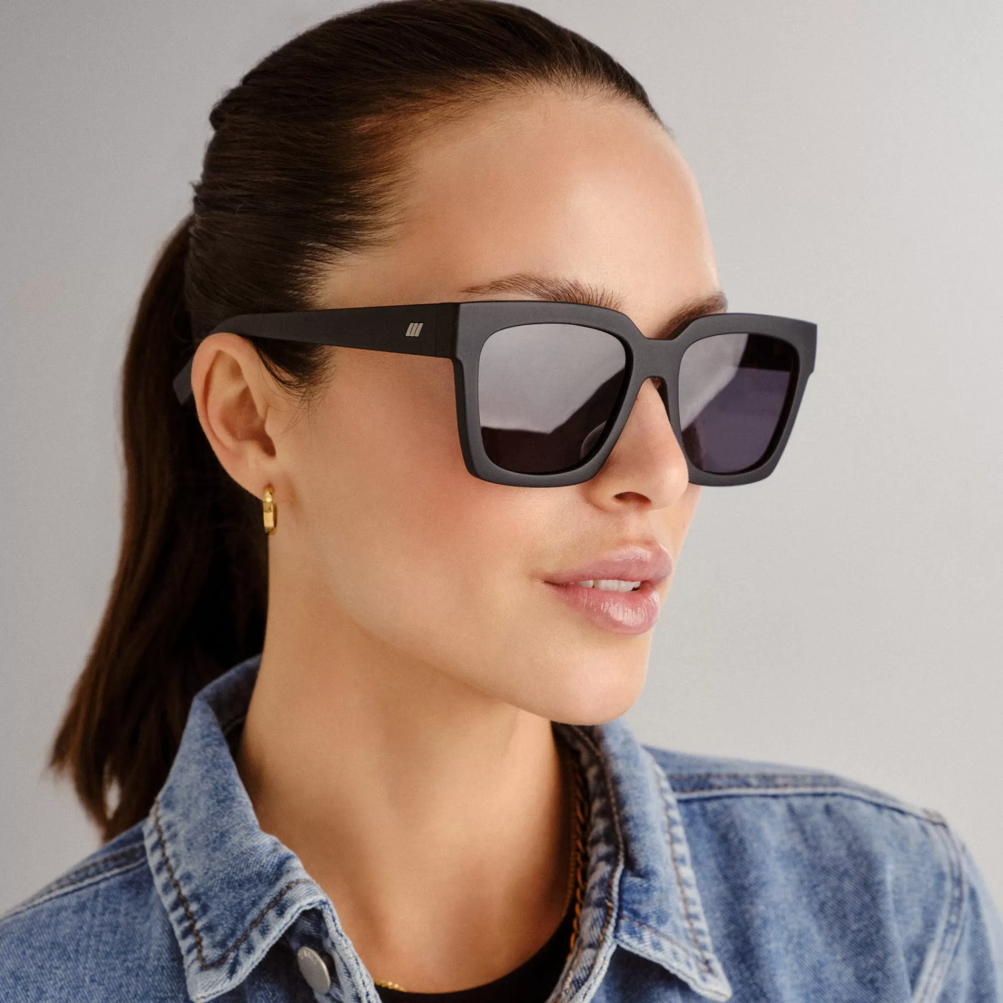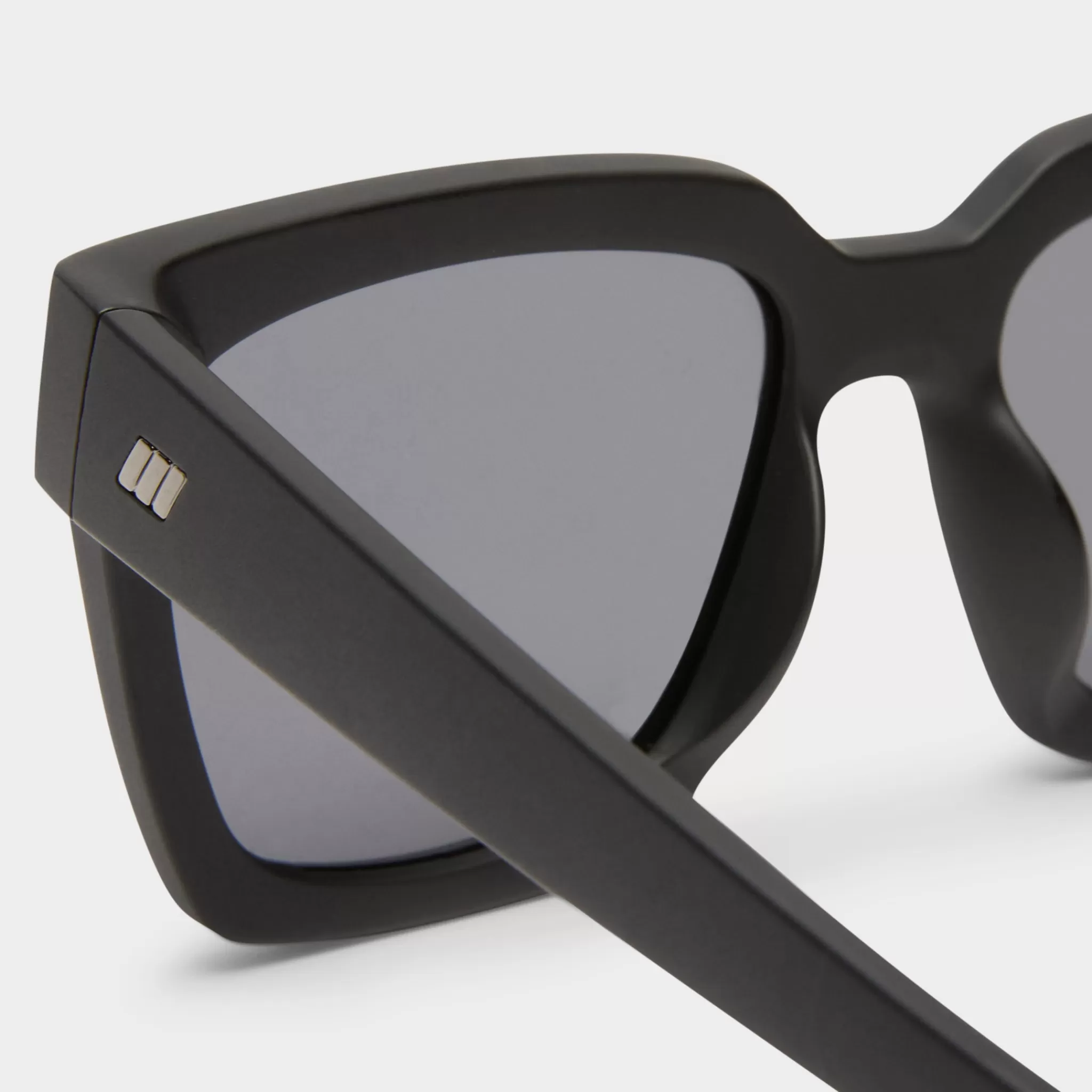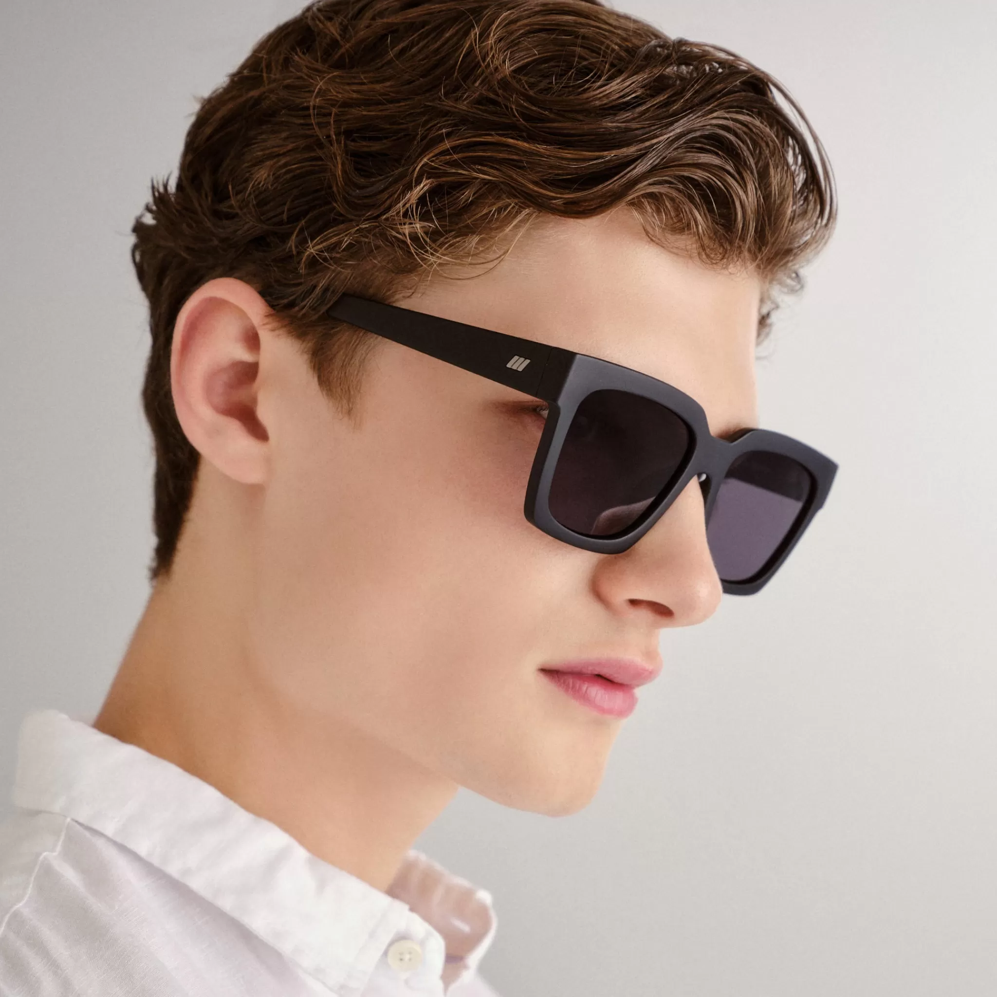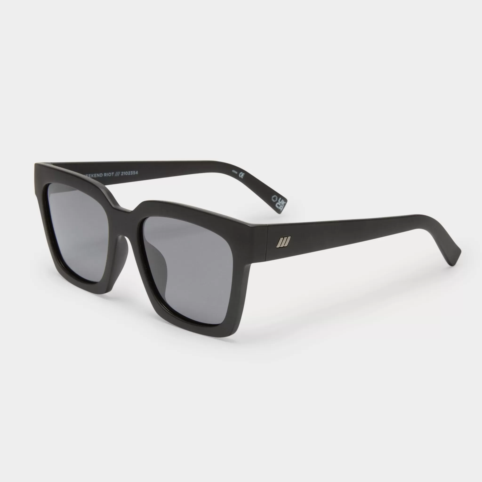 Offering an oversized fit for larger faces, WEEKEND RIOT is a modern D-frame silhouette that focuses on comfort and fit. With lenses fitted to provide maximum UV protection, each style is subtly finished with iconic Le Specs flag stripe metal hardware on both temples.