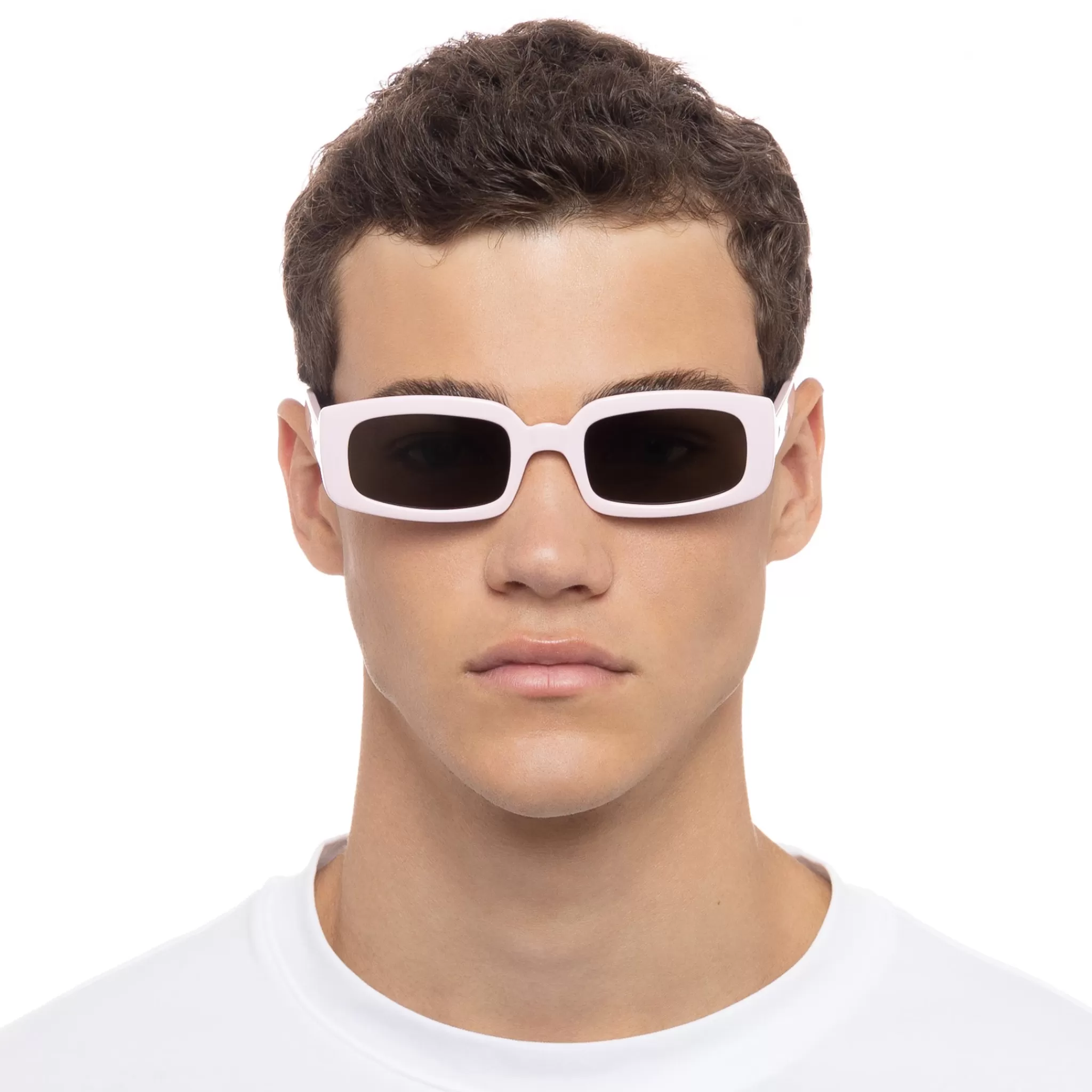 Designed with narrow proportions and wide fit for all face sizes, our DYNAMITE rectangular frame sunglasses are a wardrobe staple for both guys and girls. Featuring a classic noughties-inspired look, this unisex sunglass features discreet Le Specs metal stud detailing on both temples.