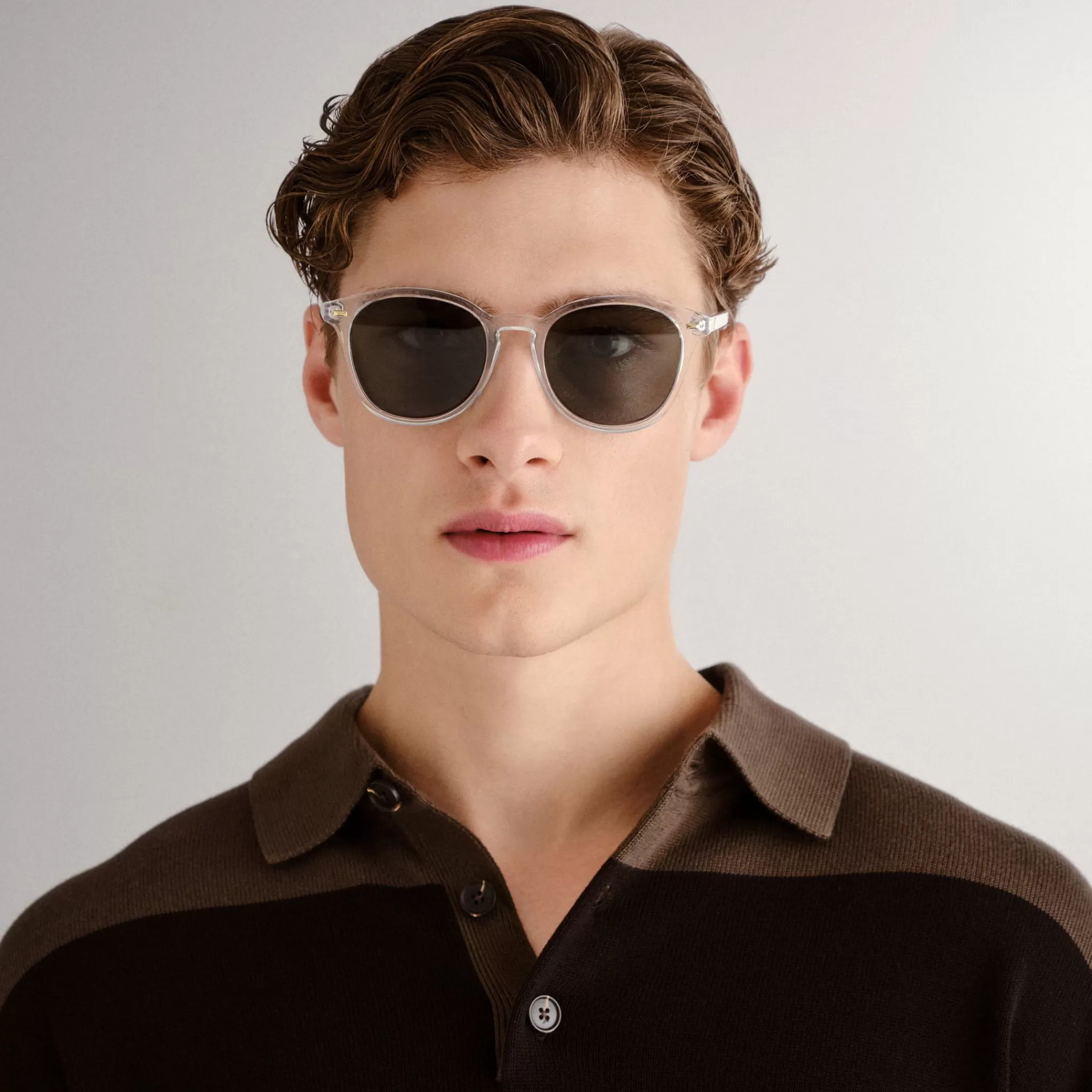Finished in a vintage translucent clear frame paired with contrast dark lenses.