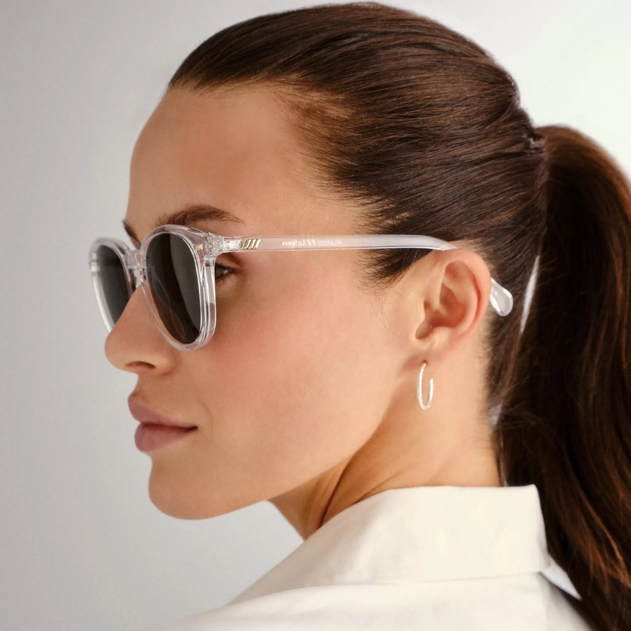 With vintage inspired details, this iconic Le Specs style is the perfect all-round sunglass offering a timeless aesthetic. Featuring a keyhole nose bridge and refined angles, this midsize style is finished with discreet metal rivet detailing and Le Specs flagstripe metal hardware.