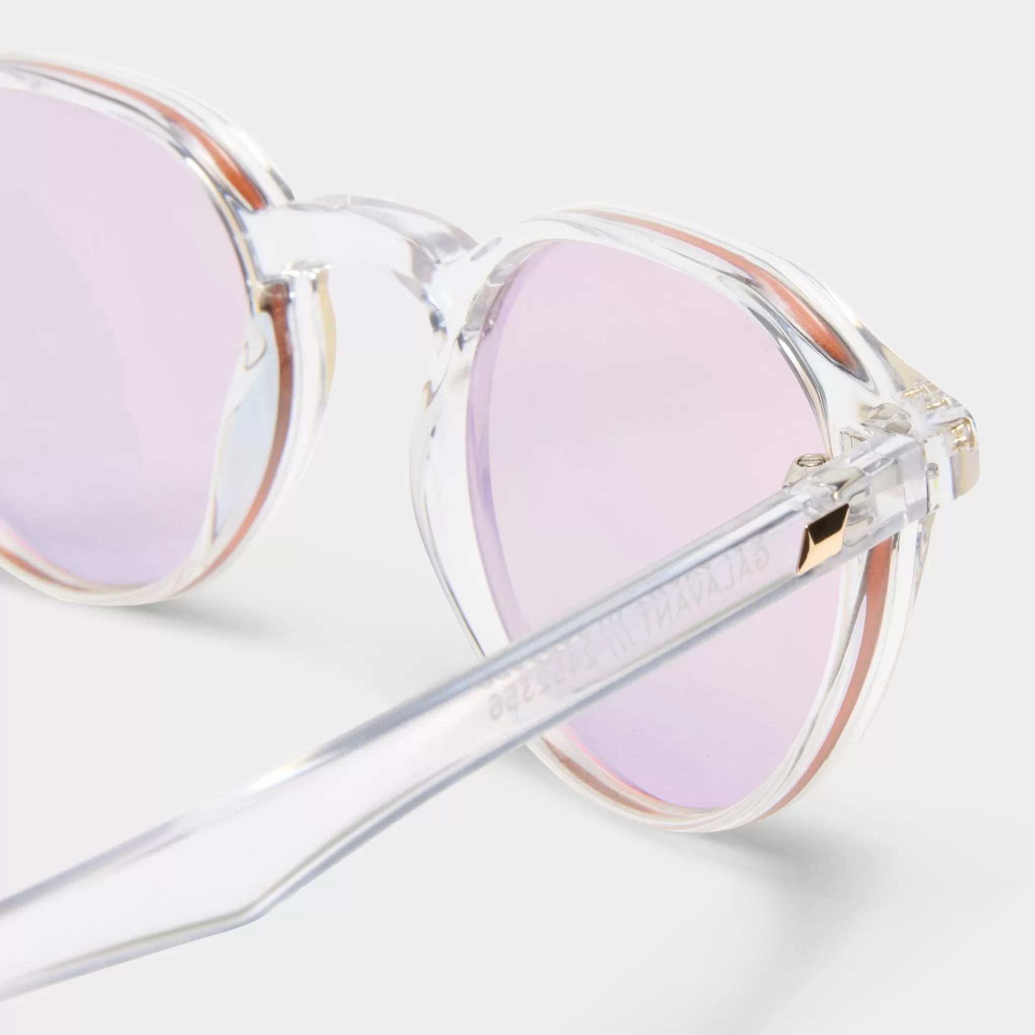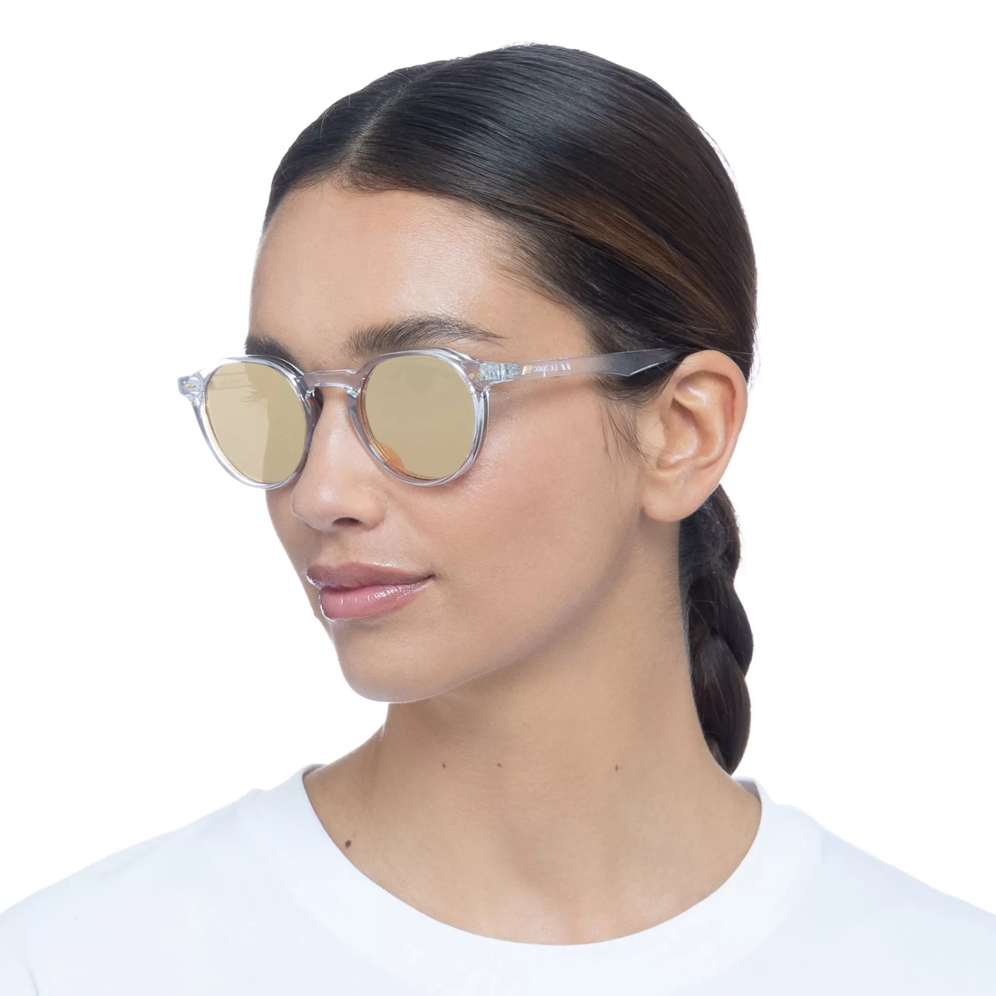 Uninhibited, carefree, and classic, our GALAVANT sunglasses are a modern update on a classic vintage silhouette. With squared-off details, this easy-to-wear round style is the perfect all-around sunglass offering a timeless aesthetic. Featuring a keyhole nose bridge and refined angles, this midsize style is finished with discreet dual rivet detailing and Le Specs flagstripe metal hardware.
