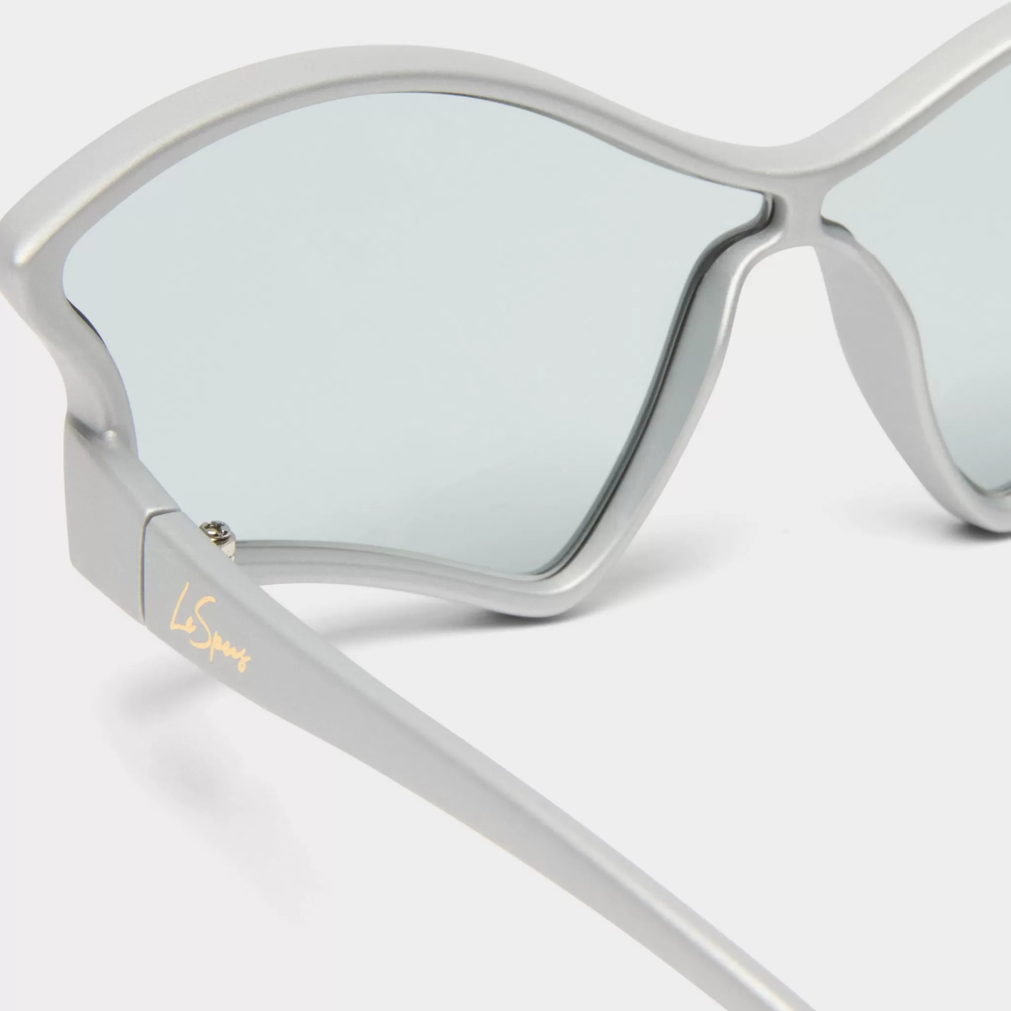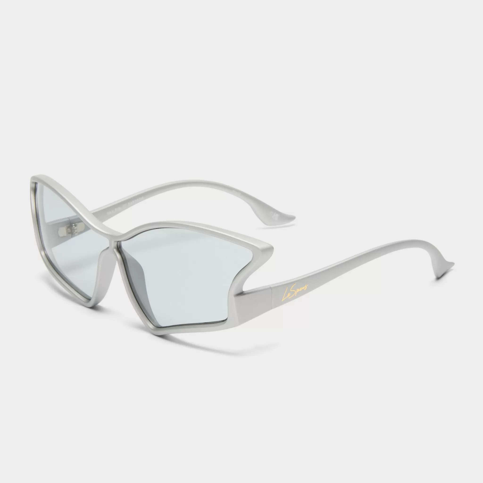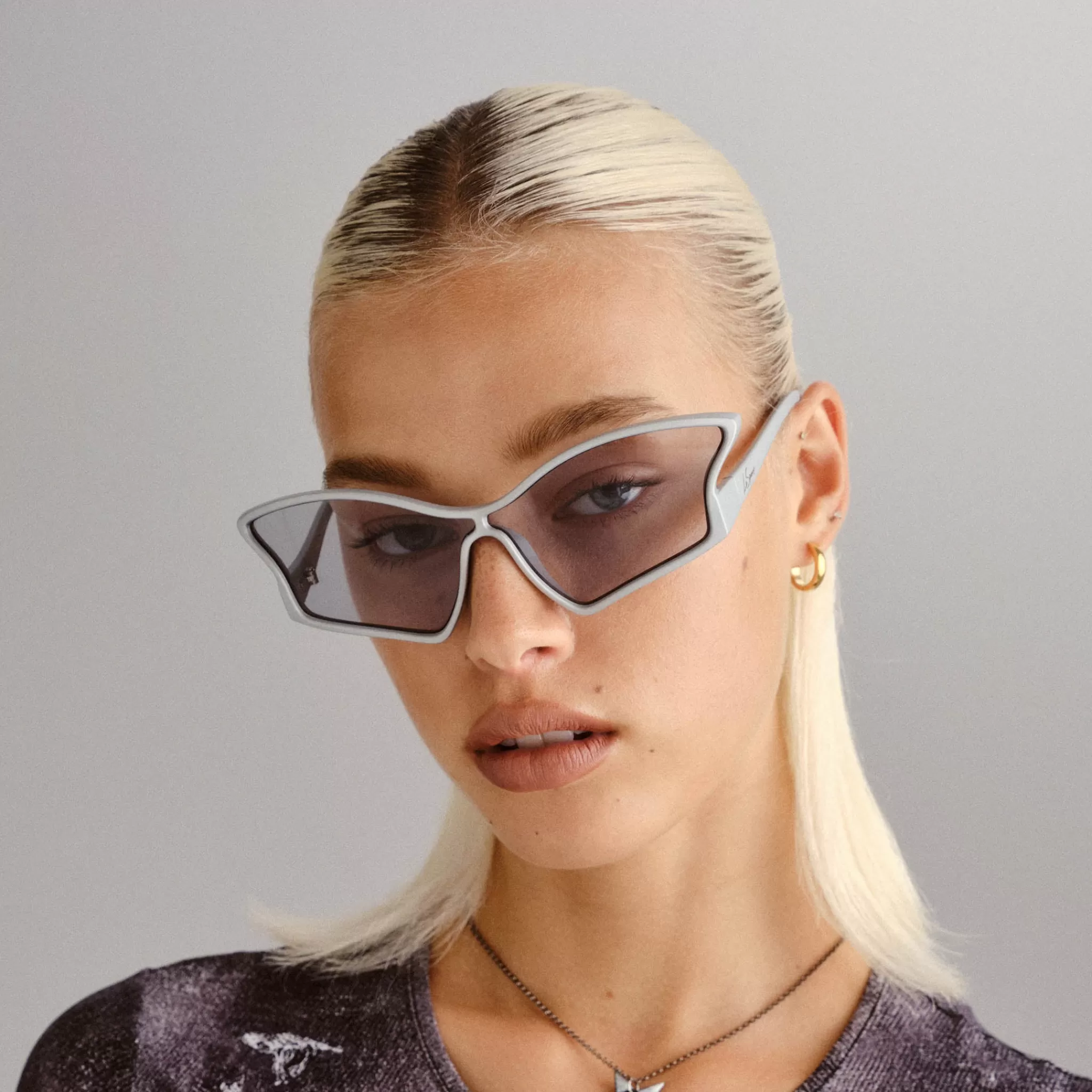 • Finished in a matte silver chrome frame with a light grey lenses.