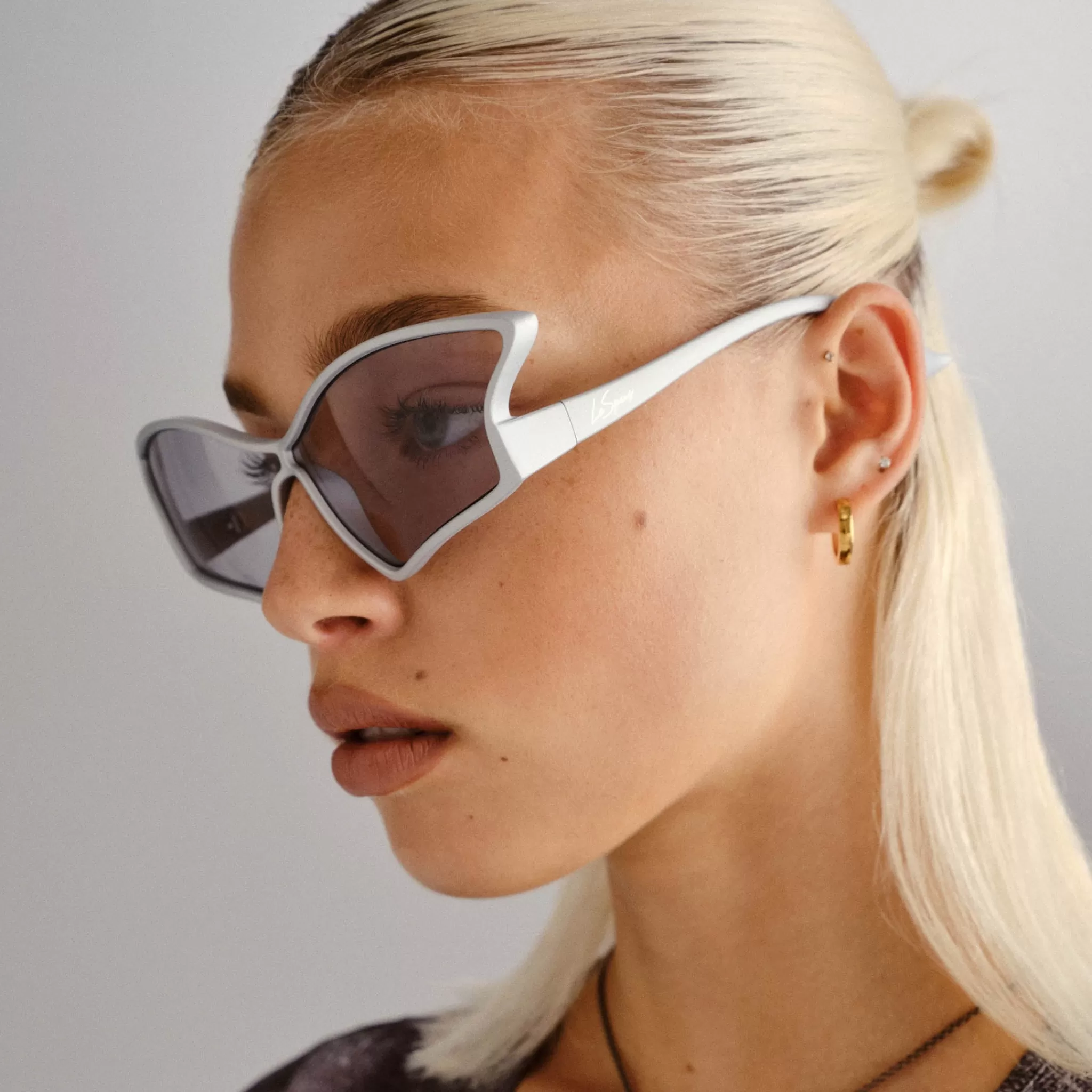 Designed with sweeping cat eye proportions, our TAILFIN sunglasses exude modern confidence. Featuring a bottom feeding style curved temple and custom exaggerated tip shape, this lavish statement frame is finished with a high sheen Le Specs script logo to each temple.