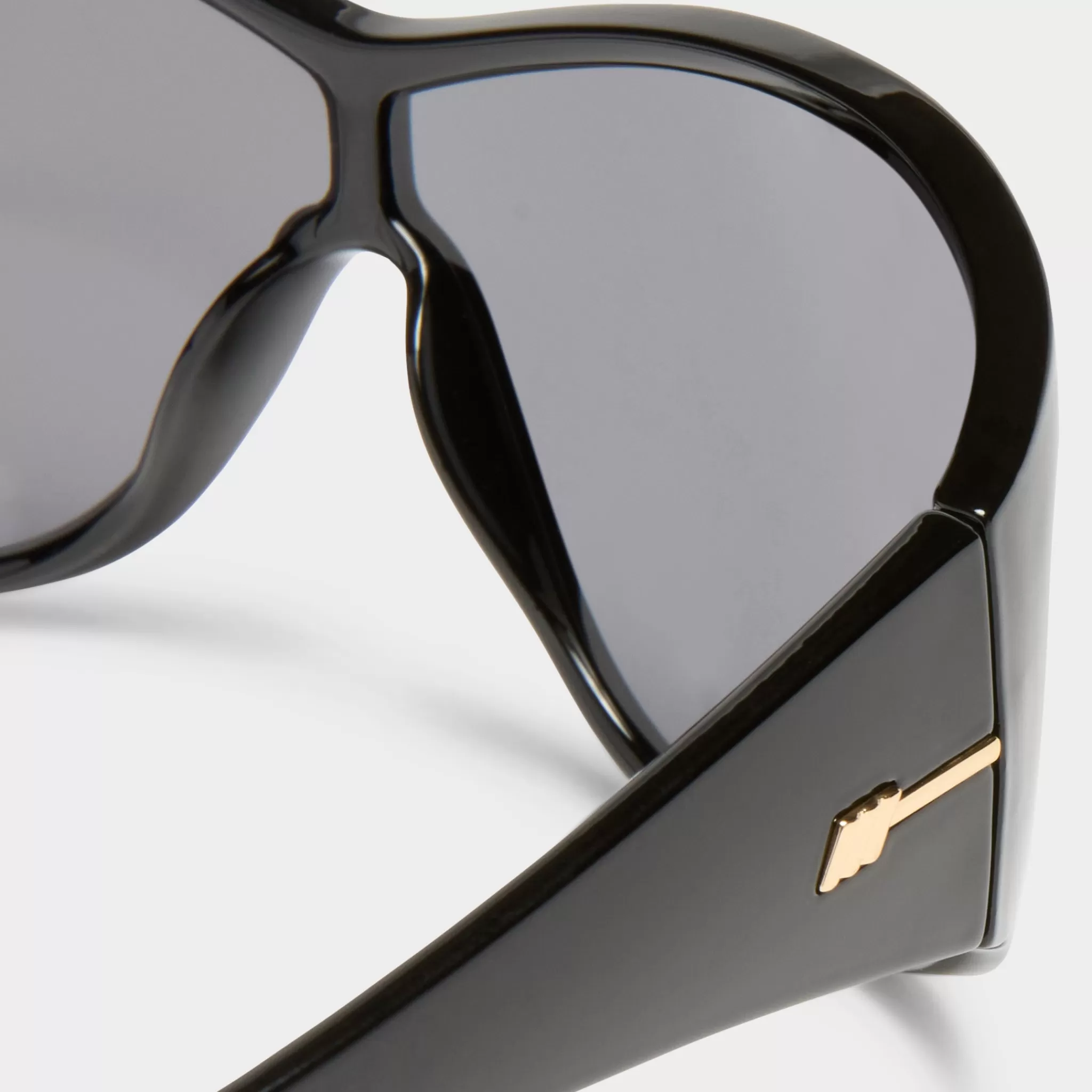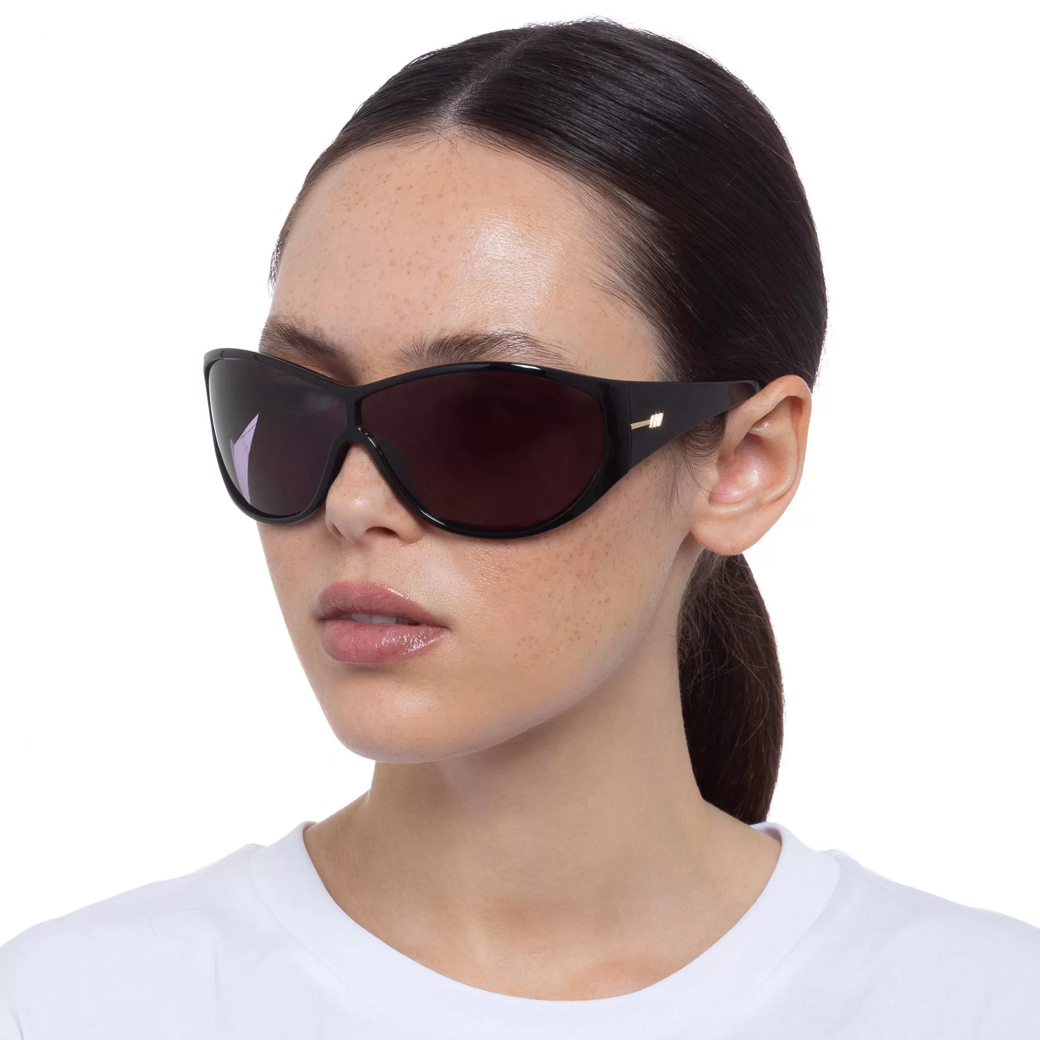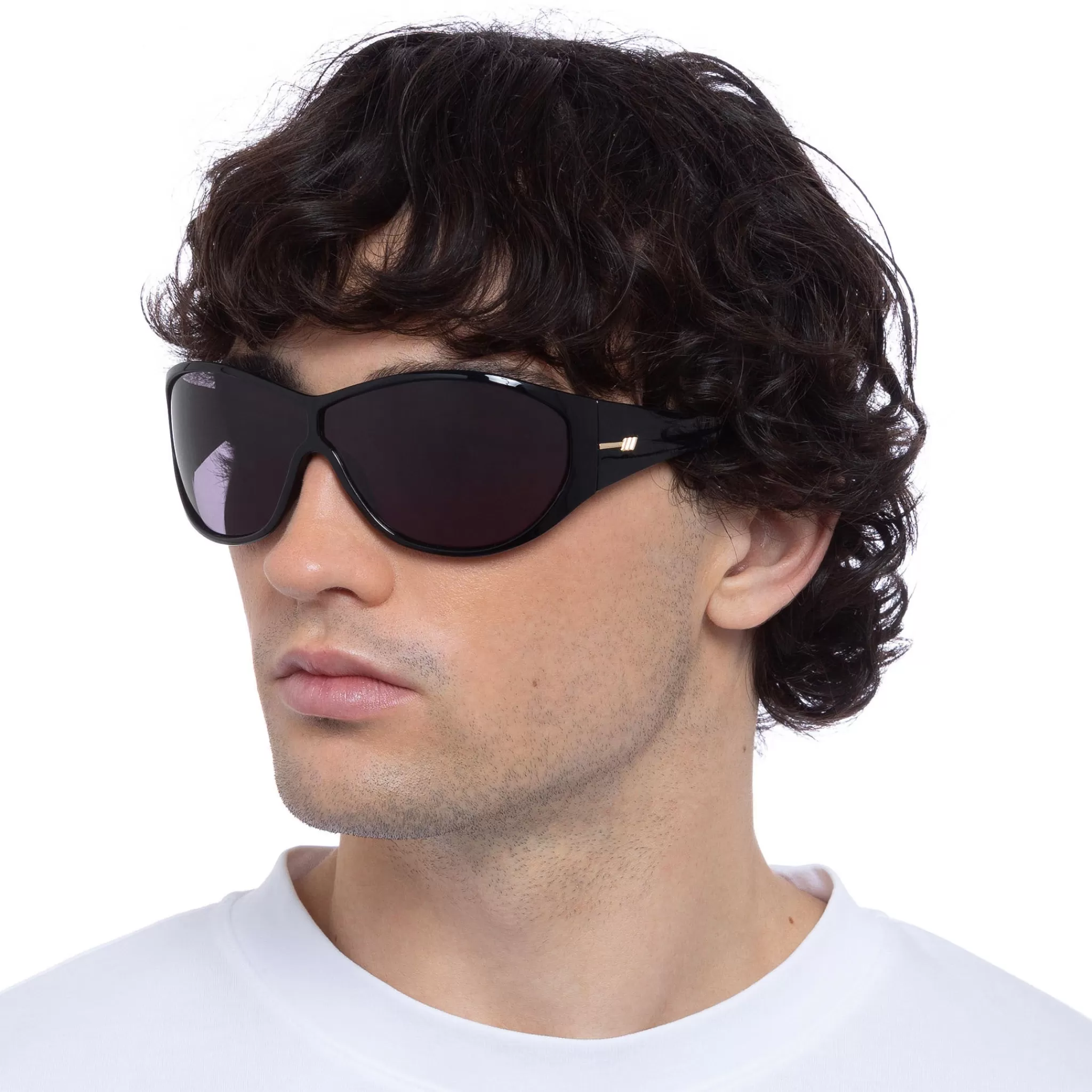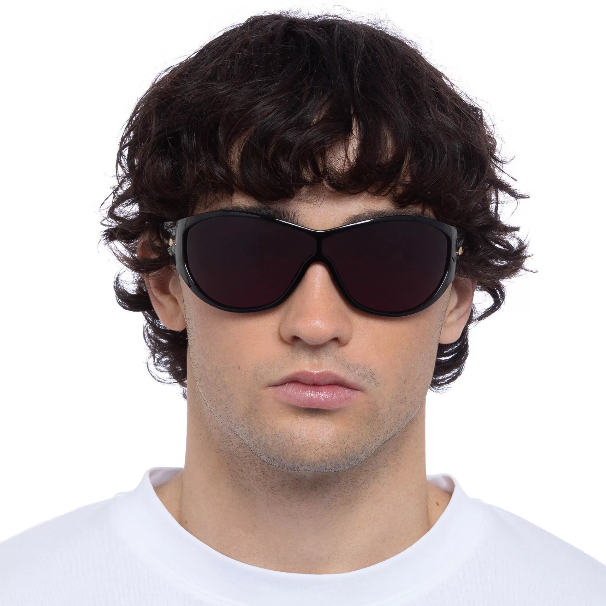Inspired by the millennial Hollywood scene, our POLARITY wrap around sunglasses are this season’s boldest new look. Designed with racy, oversized proportions and cylindrical lenses, this unisex style offers a snug fit to the face. Detailed with luxurious pinstripe metal hardware.